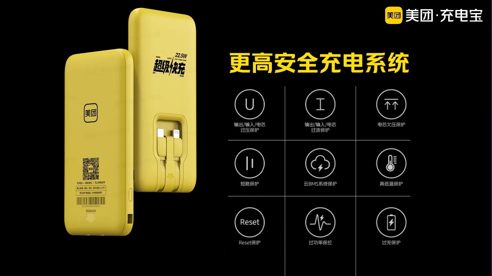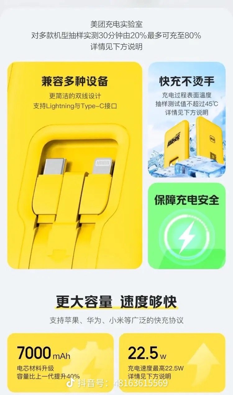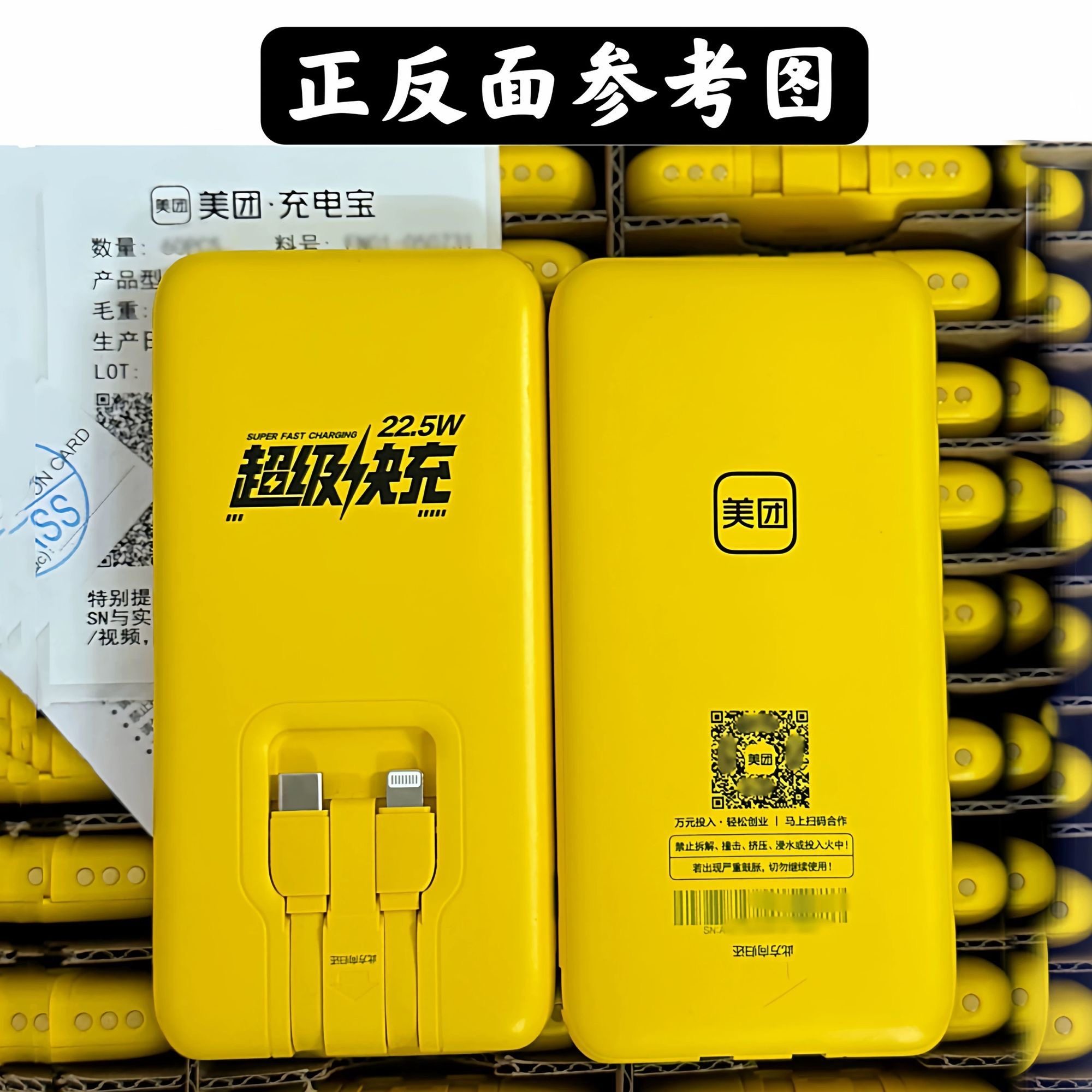 美团新款可登机 3C认证超级快充电宝22.5w双数据线便携薄移动电源