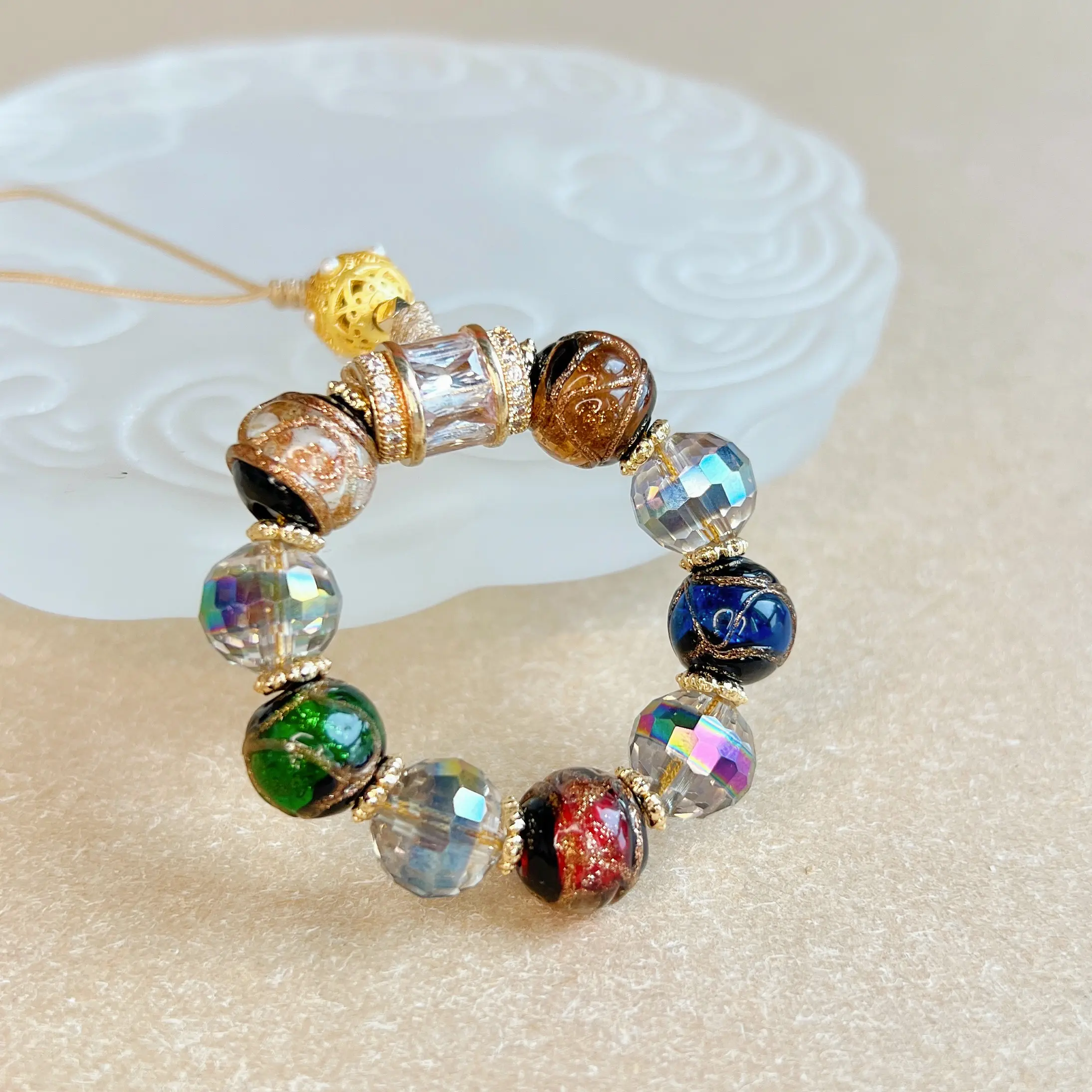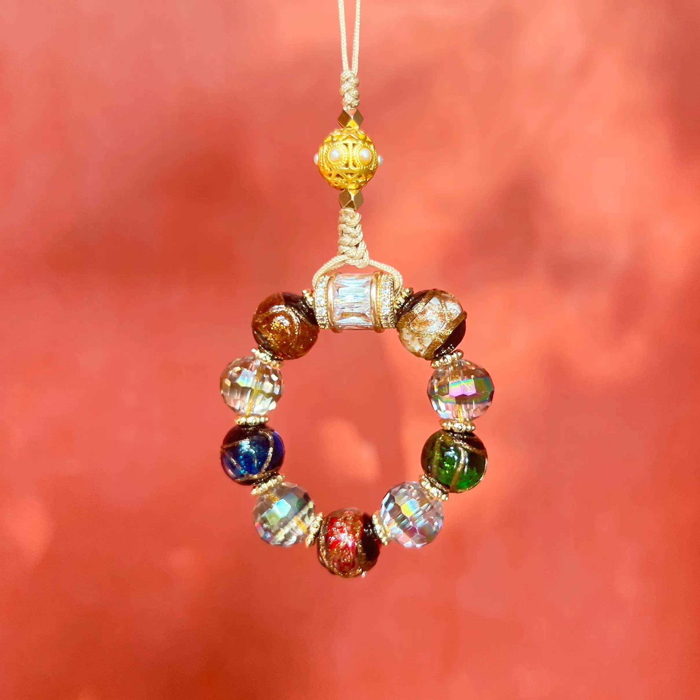 【纯手工制作】小五福香灰琉璃手机链车挂钥匙链吊坠转运十全十美