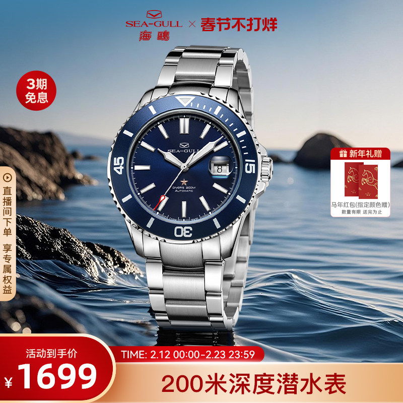 海鸥表男表海洋系列夜光深度潜水表男款自动机械表手表男士腕表