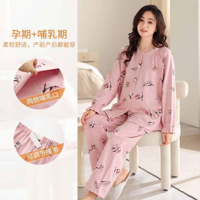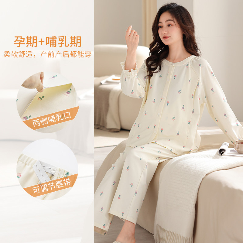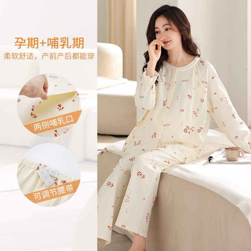 纯棉月子服哺乳睡衣女士春秋季孕妇大码怀孕期家居服套装上衣产后