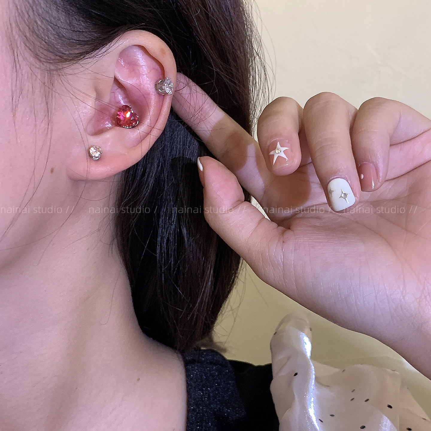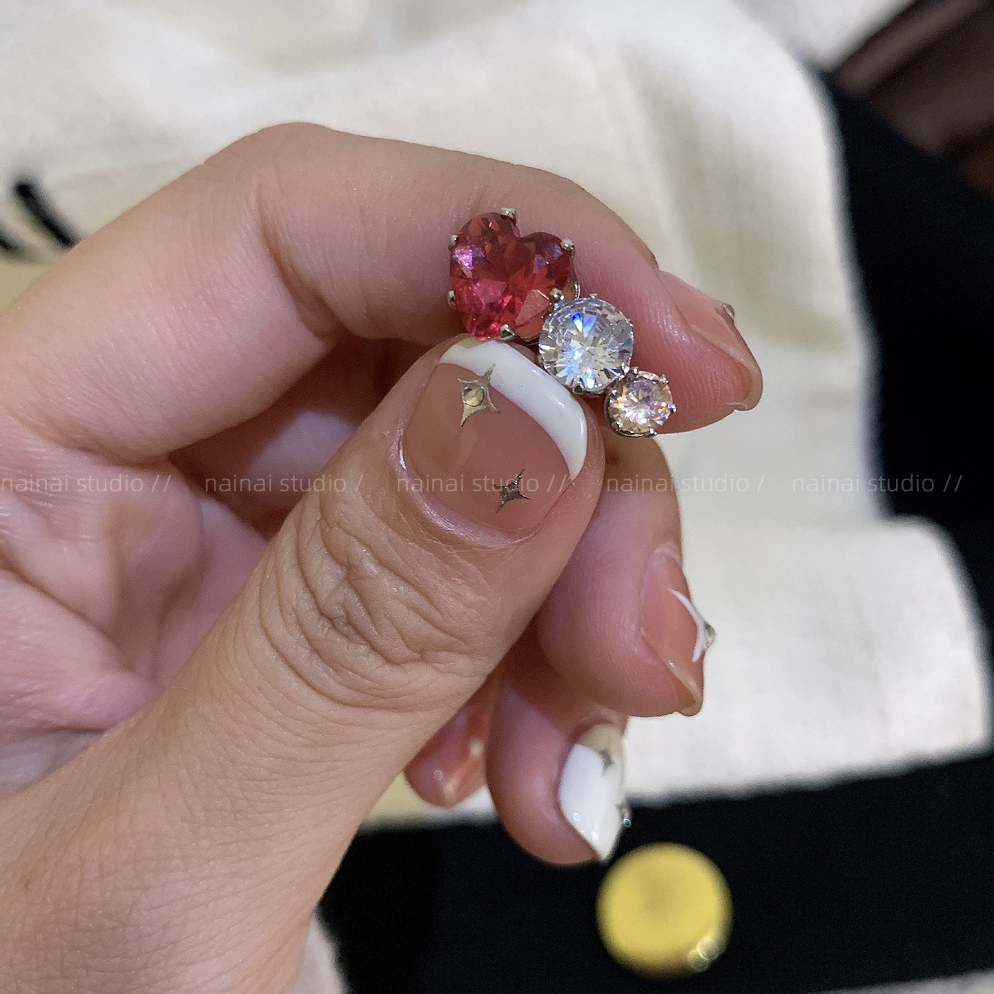 磁吸爱心耳骨夹~锆石耳蜗钉小众设计高级感无耳洞耳夹耳环女耳饰A