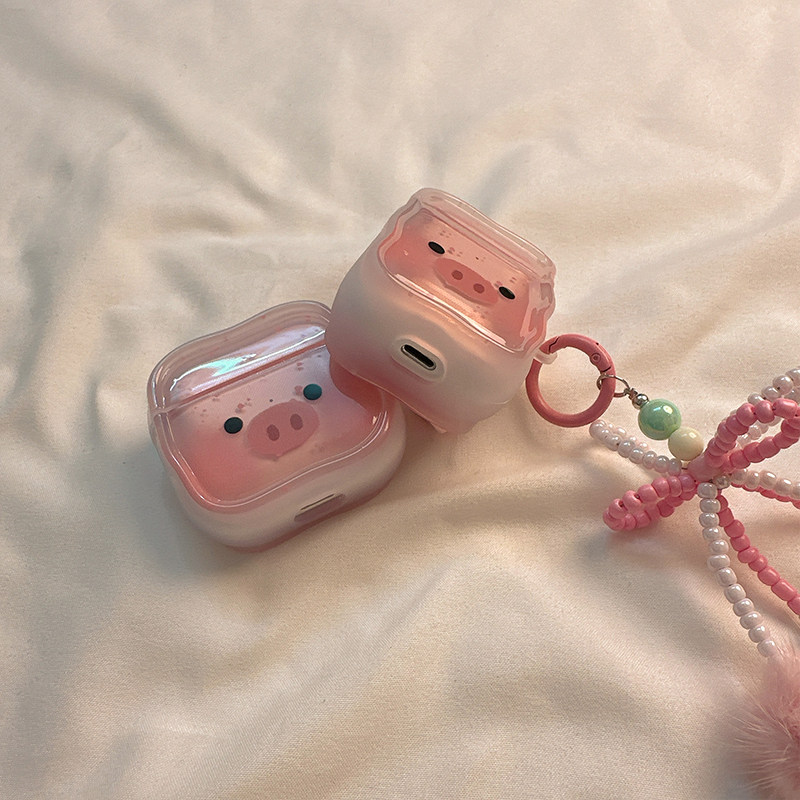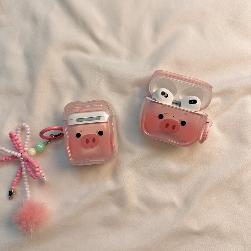 ins泼墨粉色可爱小猪适用AirPods4保护套新款iPod苹果耳机壳带挂饰2代无线蓝牙盒3代airpodspro2代防摔保护壳