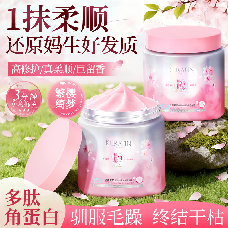 闪钻鱼子酱发膜蛋白还原酸柔顺护发素修护干枯毛躁护发顺滑旗舰店