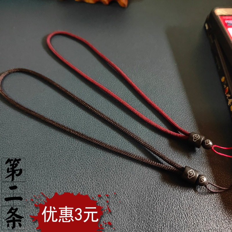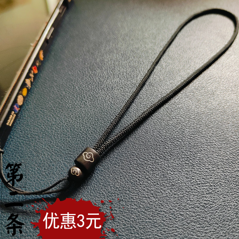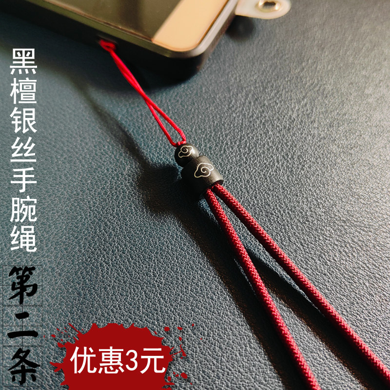 龙年原创高端黑檀镶银丝防摔带手机挂绳手腕绳子男女吊饰链条短款