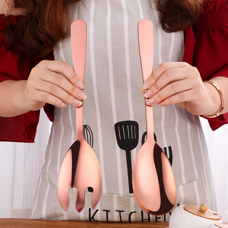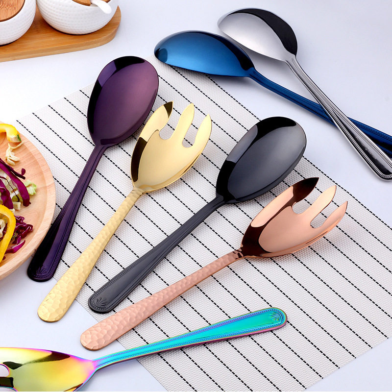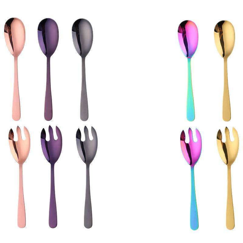 创意不锈钢两用叉勺 特长加厚沙拉勺子沙拉叉 西式餐具水果叉勺