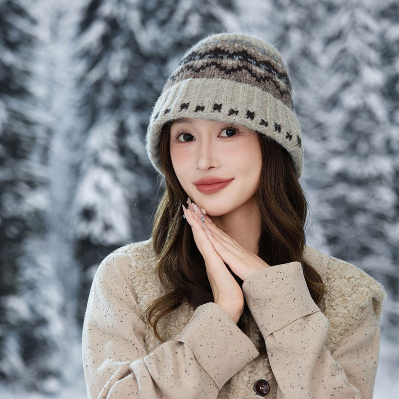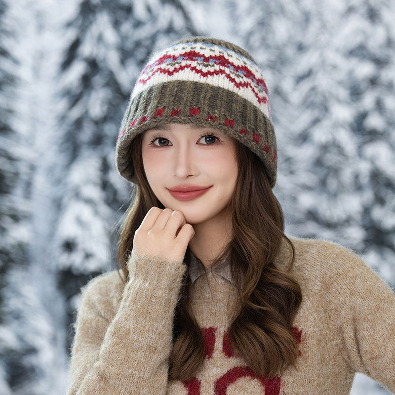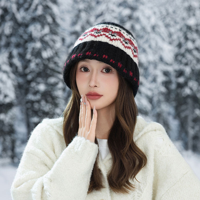 秋冬针织渔夫帽2025新款民族风盆帽女生保暖桶帽户外红色灰色黑色