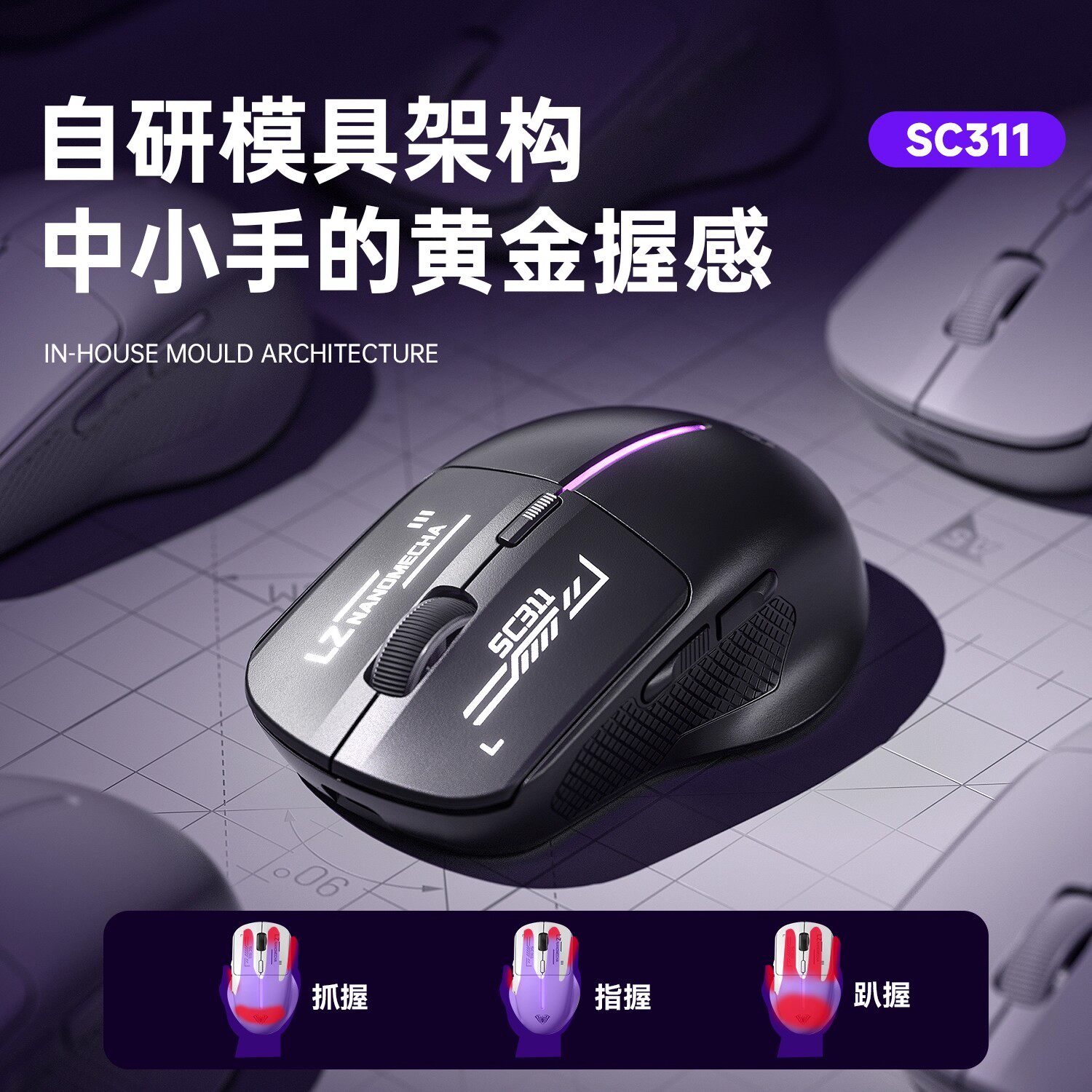 狼蛛SC311无线鼠标蓝牙三模有线电竞游戏USB滑鼠人体工学电脑外设