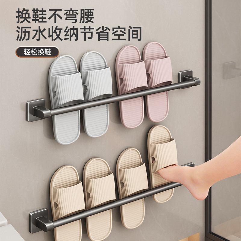 浴室免打孔拖鞋架卫生间置物架鞋子收纳神器厕所壁挂挂架沥水架子