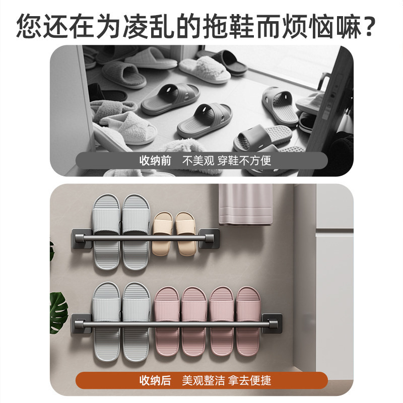 浴室拖鞋架壁挂式免打孔鞋架挂式墙上卫生间收纳厕所门后拖鞋挂架
