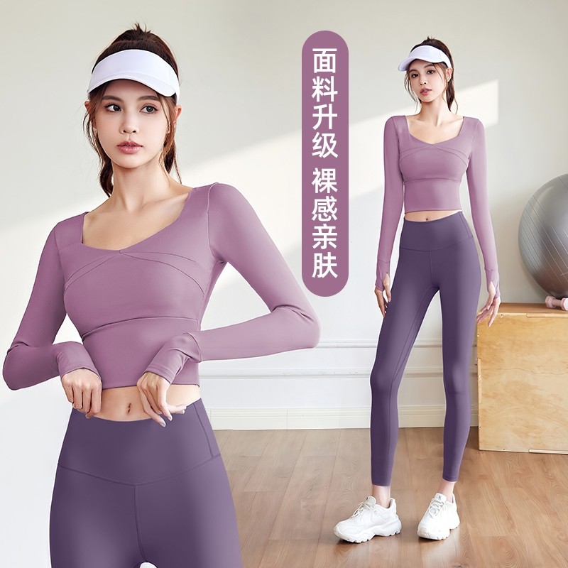 瑜伽服女2025套装秋季长袖运动上衣普拉提健身爬山户外时尚固定