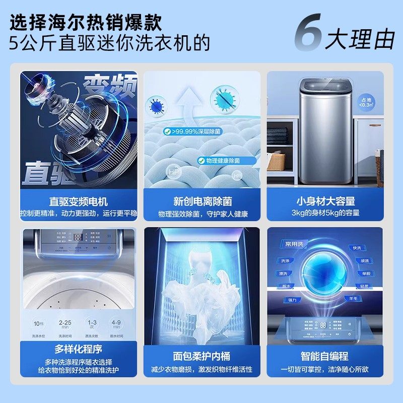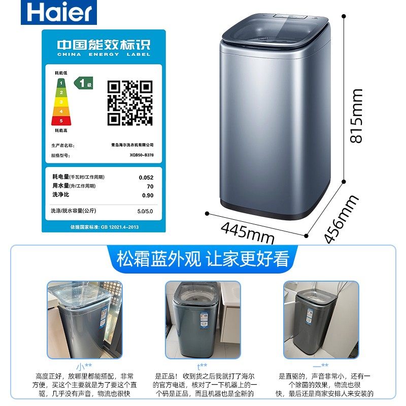 【立减20%】海尔5公斤婴儿童迷你波轮洗衣机家用直驱全自动b378