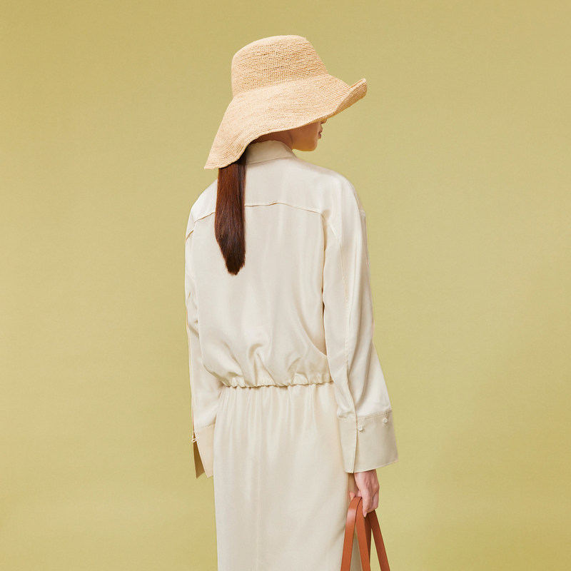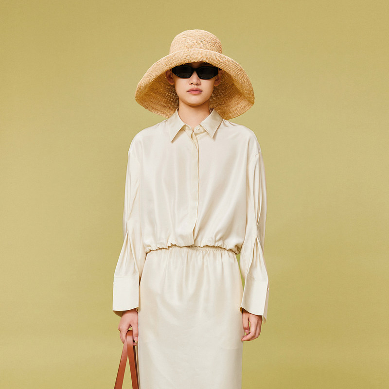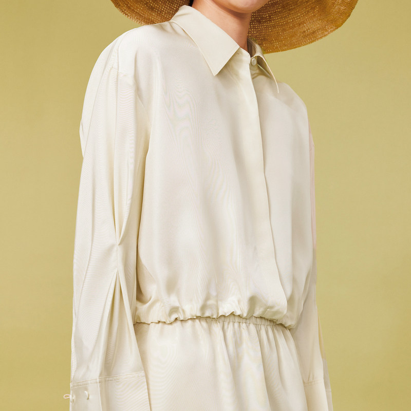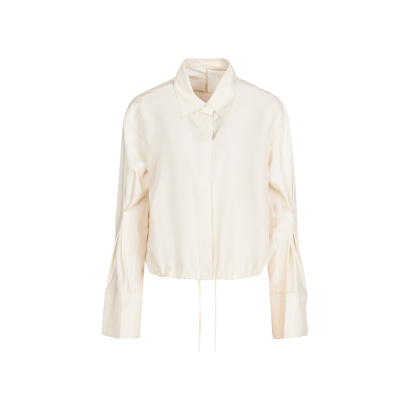 LESS小翻领短款细抽绳长袖衬衣女桑蚕真丝简约休闲衬衫2O5211040