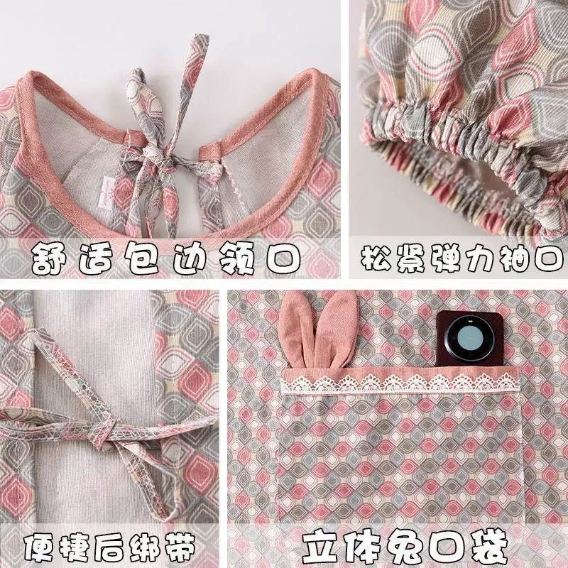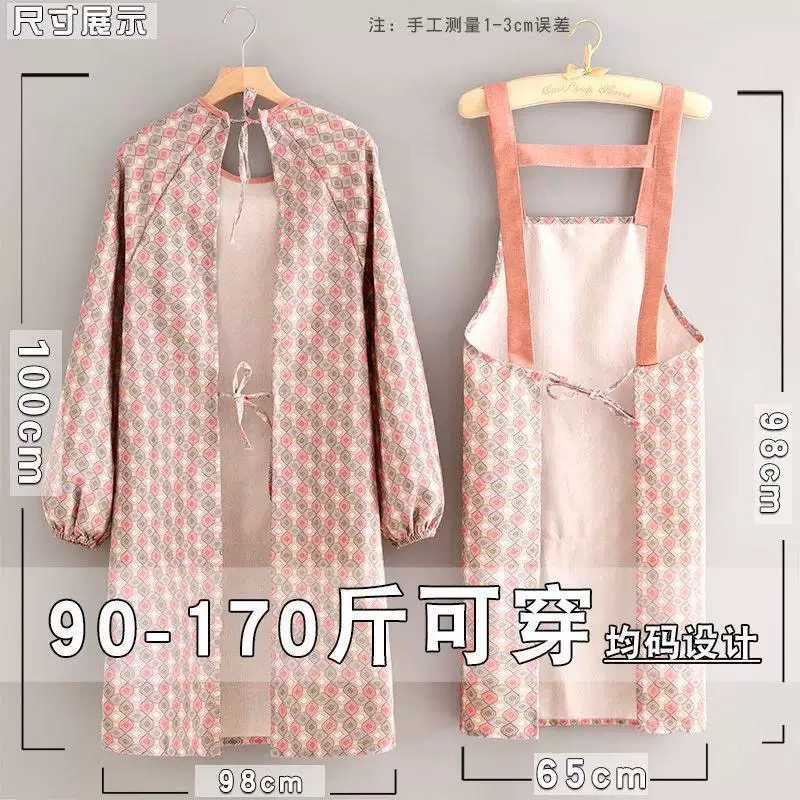 2026日本新款棉麻长袖围裙家用厨房透气罩衣女耐磨防污做饭工作服