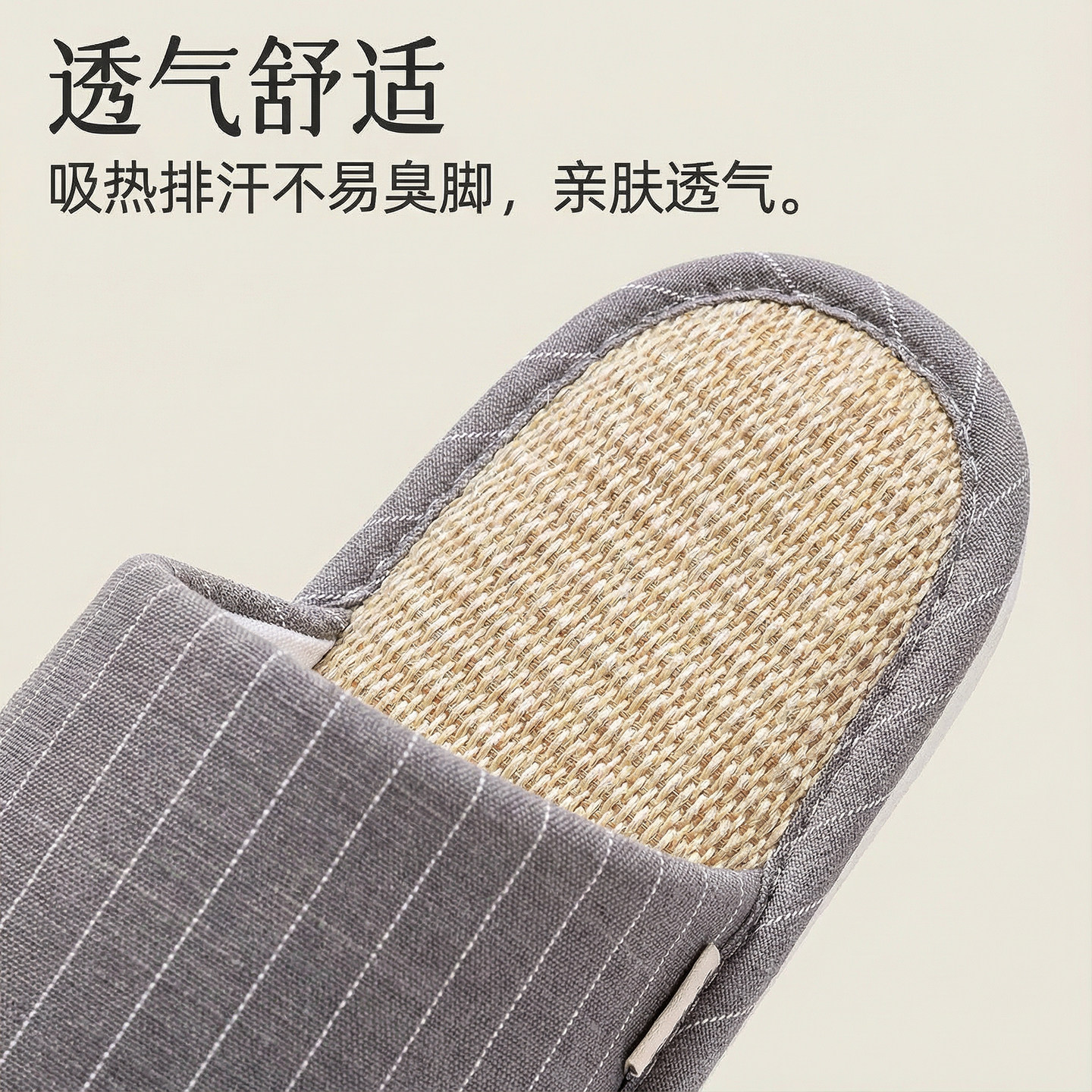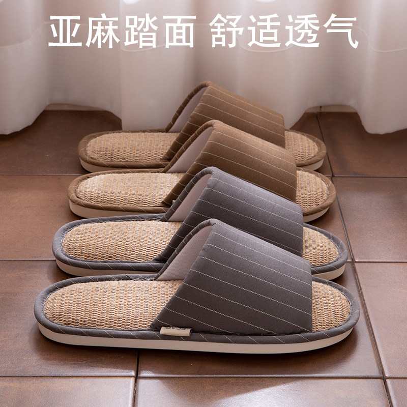 买1送1亚麻拖鞋女士情侣家居一对静音防滑家用招待客人棉麻拖鞋男