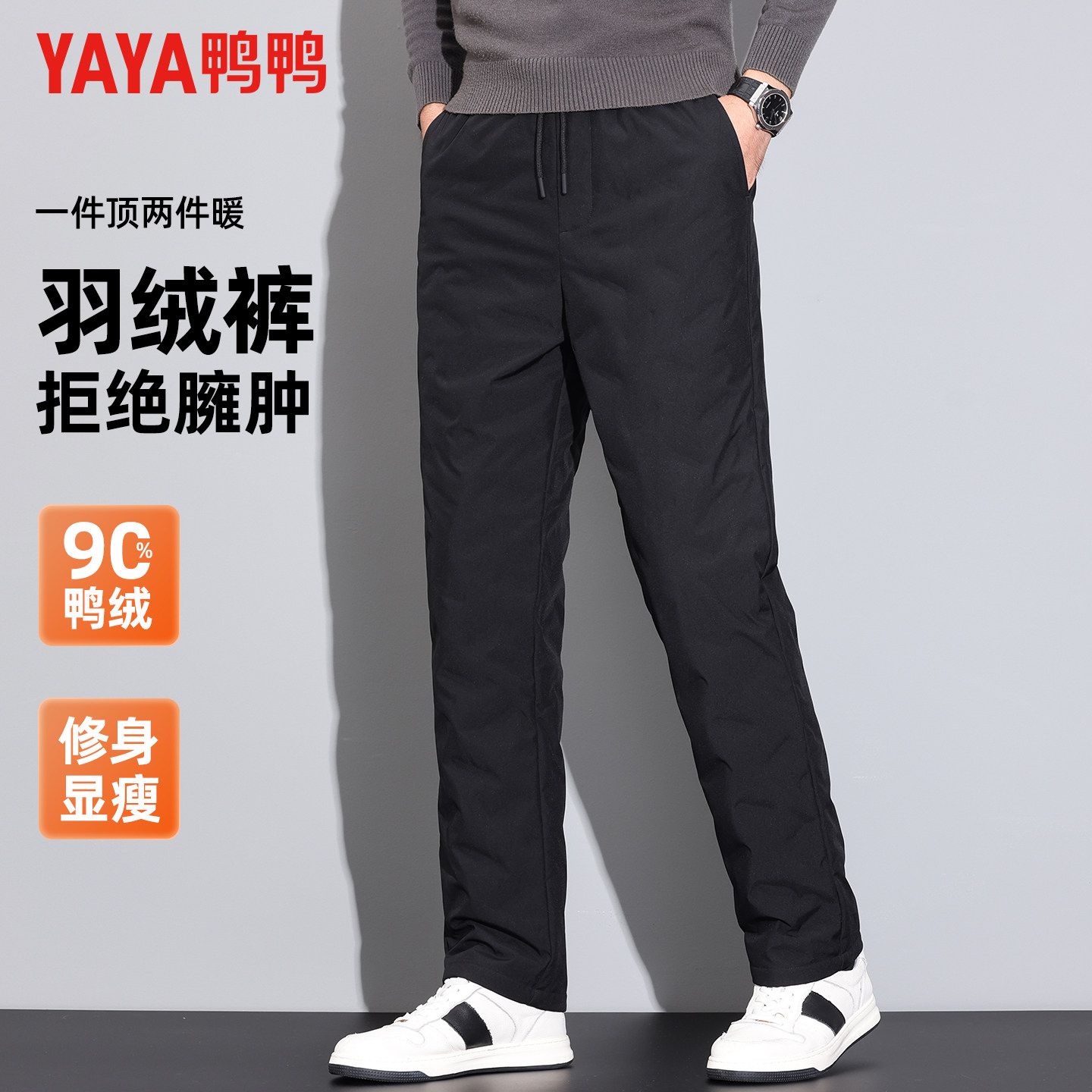 鸭鸭冬季新款羽绒裤男士时尚休闲直筒裤抽绳腰加厚外穿保暖长裤