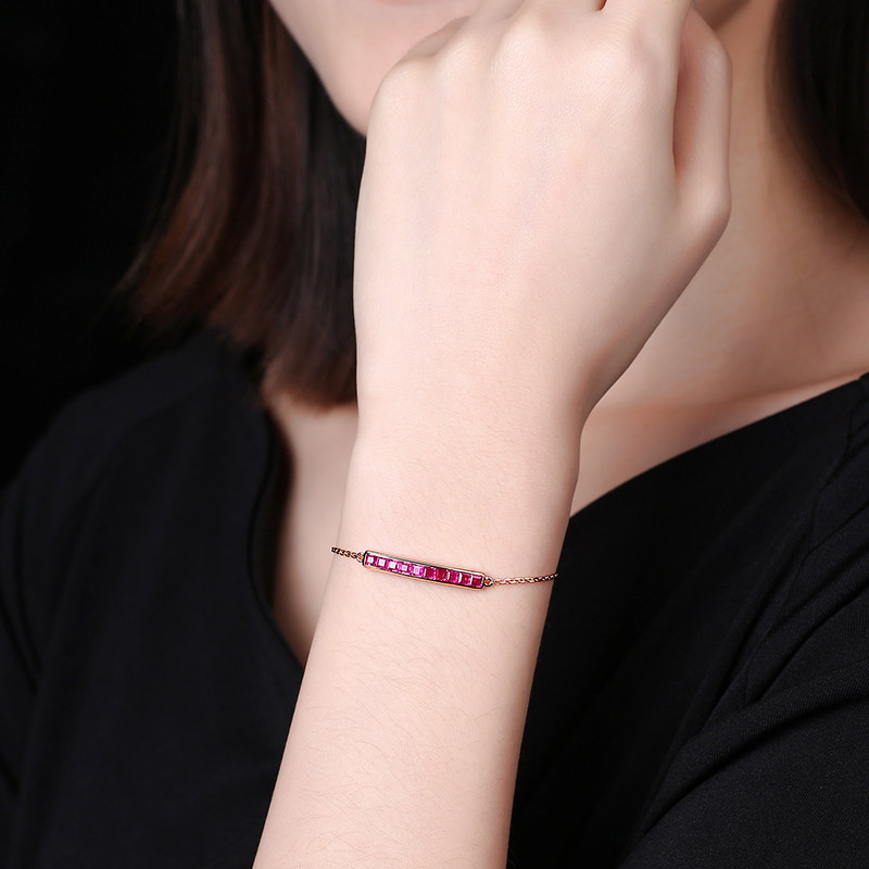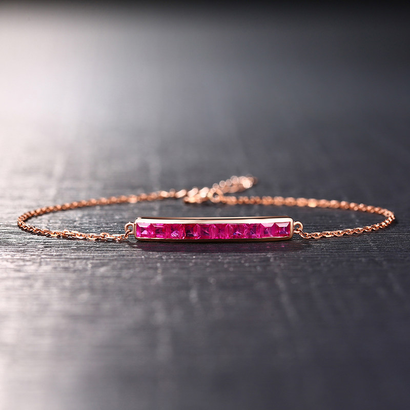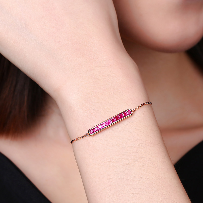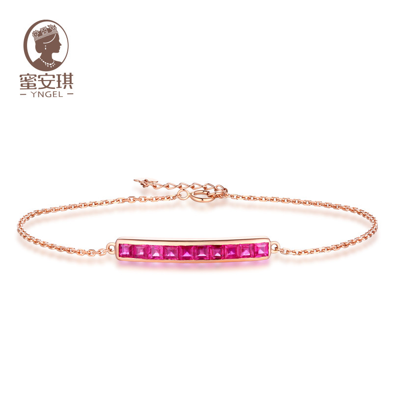 蜜安琪 1.46克拉天然正红宝石手链女彩色宝石镶嵌18K金 轻奢时尚