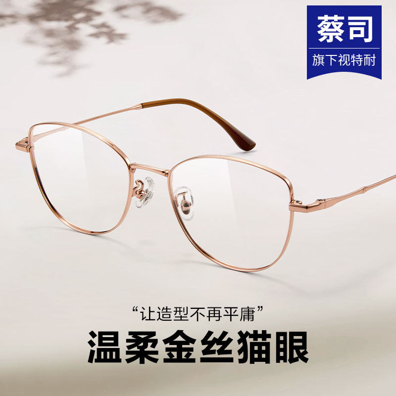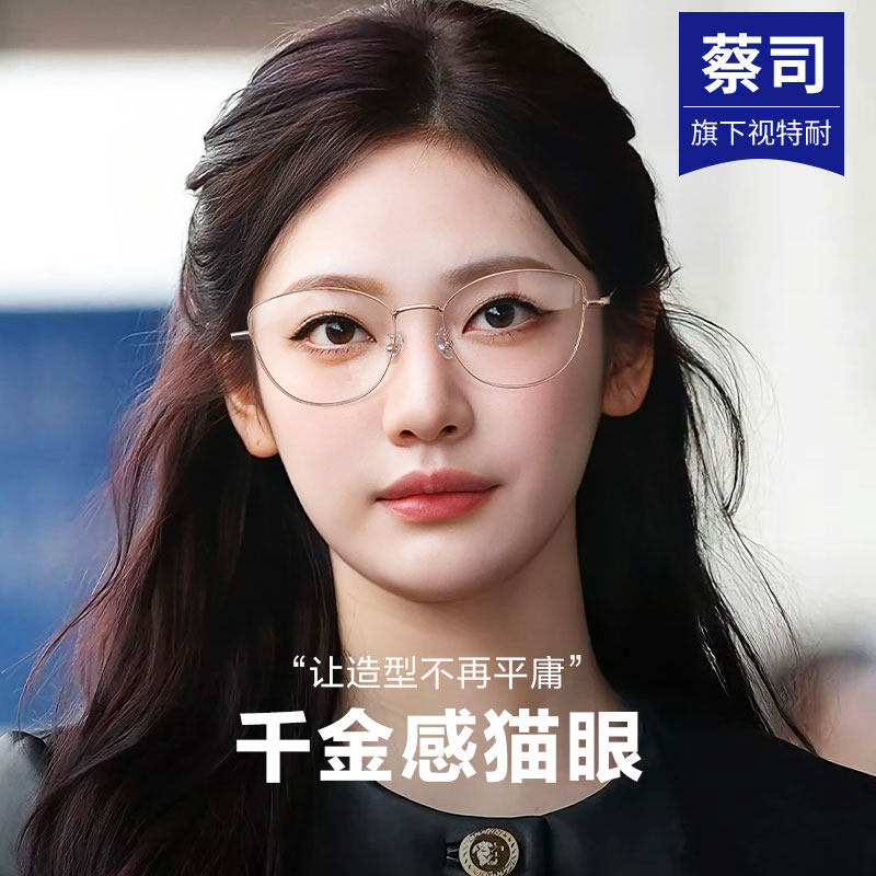 超轻纯钛猫眼近视眼镜女款专业可配散光度数方圆脸金丝素颜眼睛架