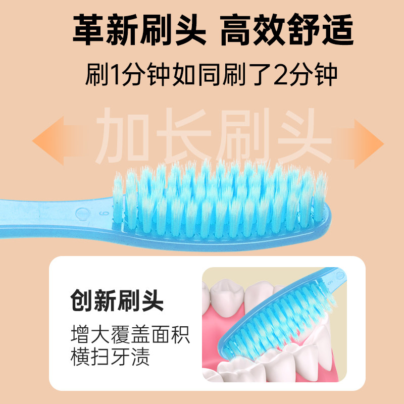4CM加长刷头细丝软毛成人牙刷多倍清洁男女情侣学生家用实惠