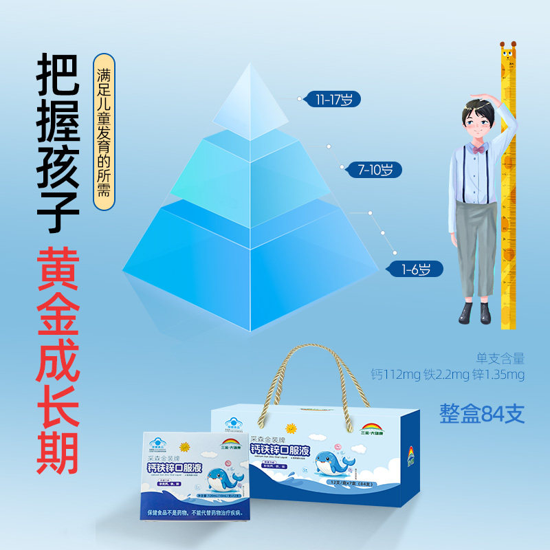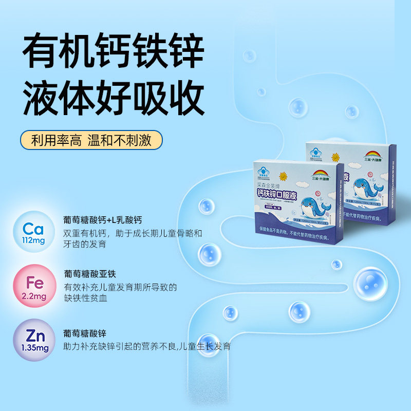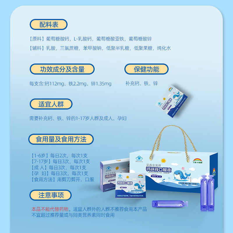 三金大健康钙铁锌口服液儿童成长成人高钙补钙葡萄糖酸锌84支礼盒