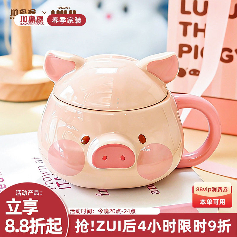 川岛屋&lulu猪联名 马克杯陶瓷水杯带盖咖啡杯子新年生日礼物女生