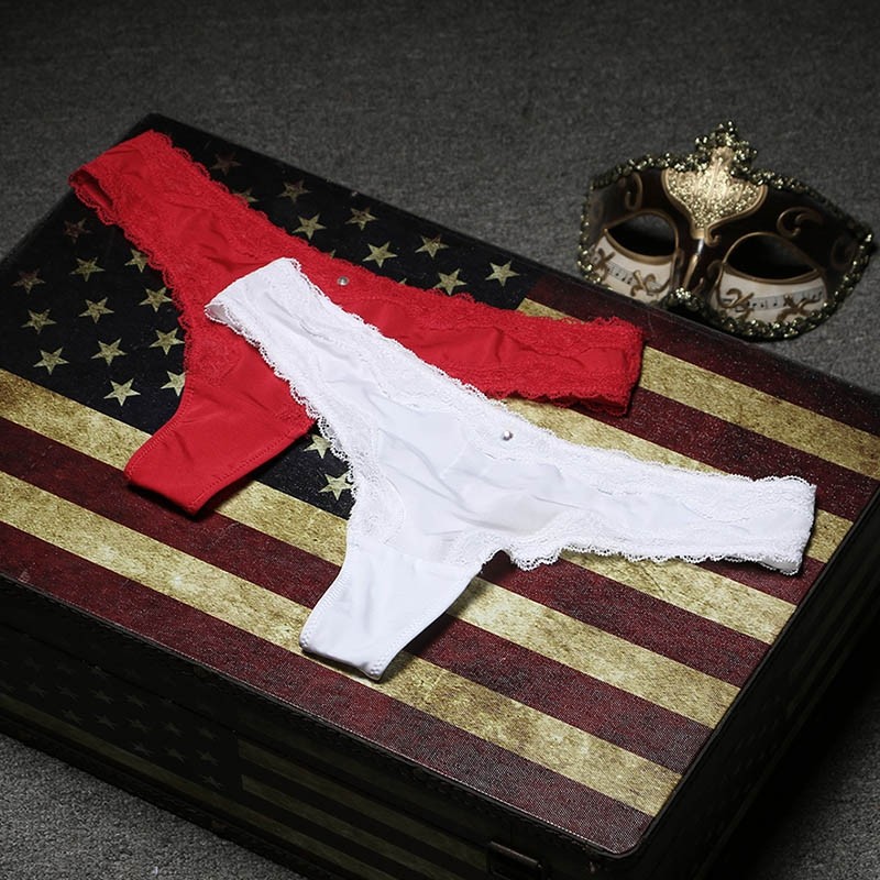 轻薄中腰丁字裤薄款蕾丝边T裤纯色丁字内裤红色白色透气纯棉裆女