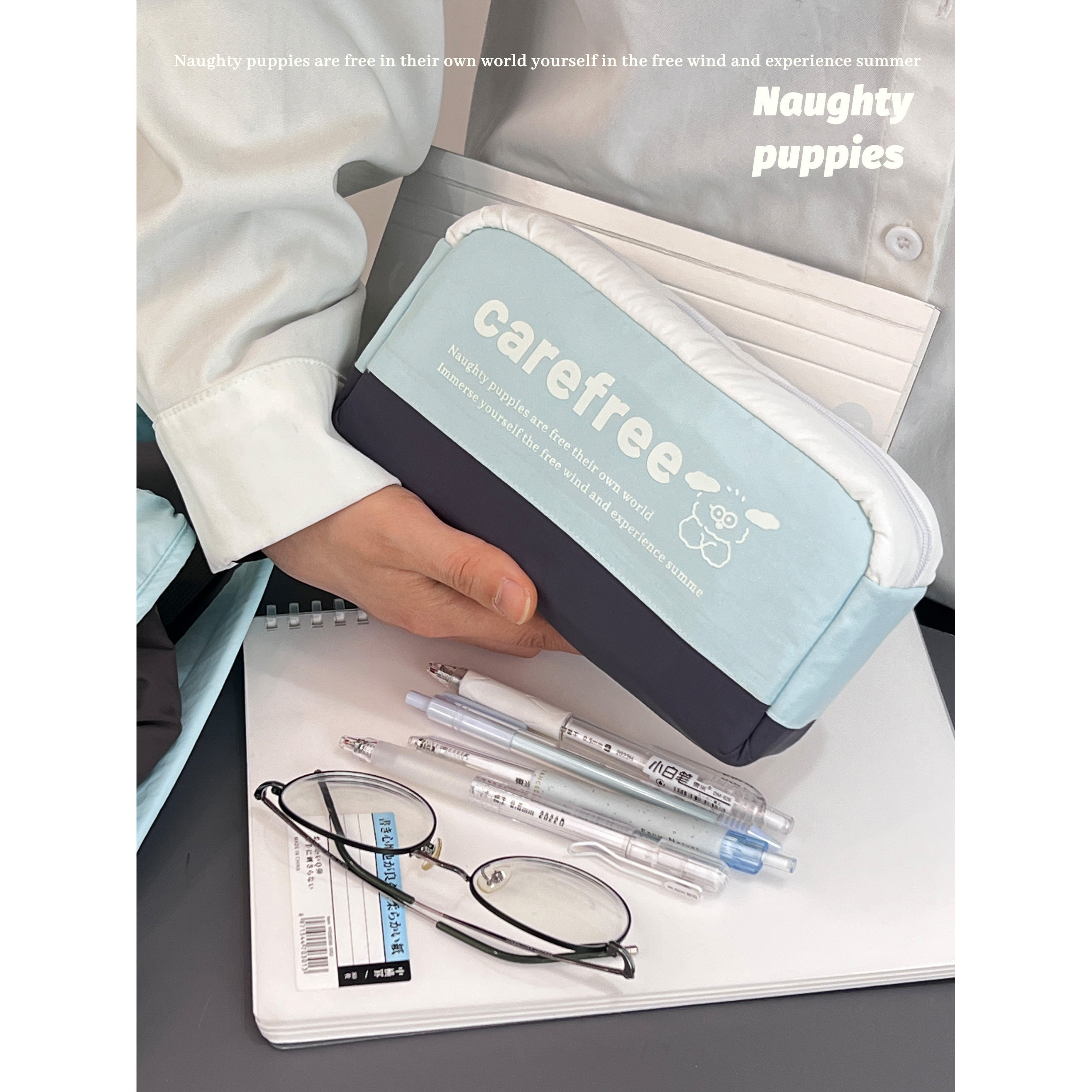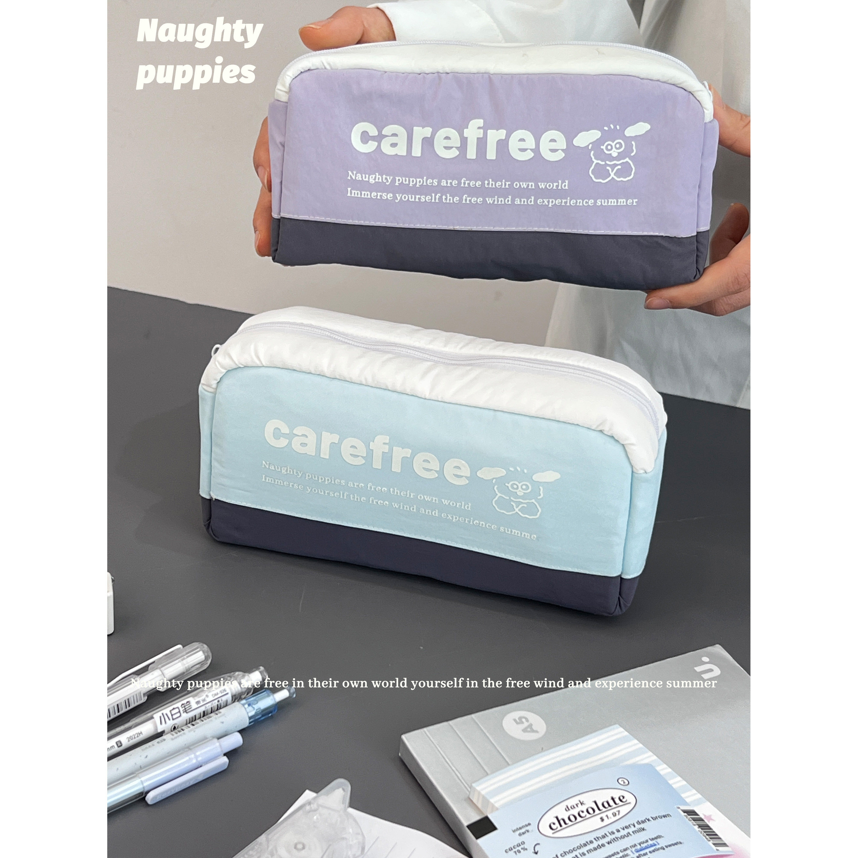 棉花加点糖原创韩系薄荷拼色笔袋可爱文具盒学生收纳大容量文具