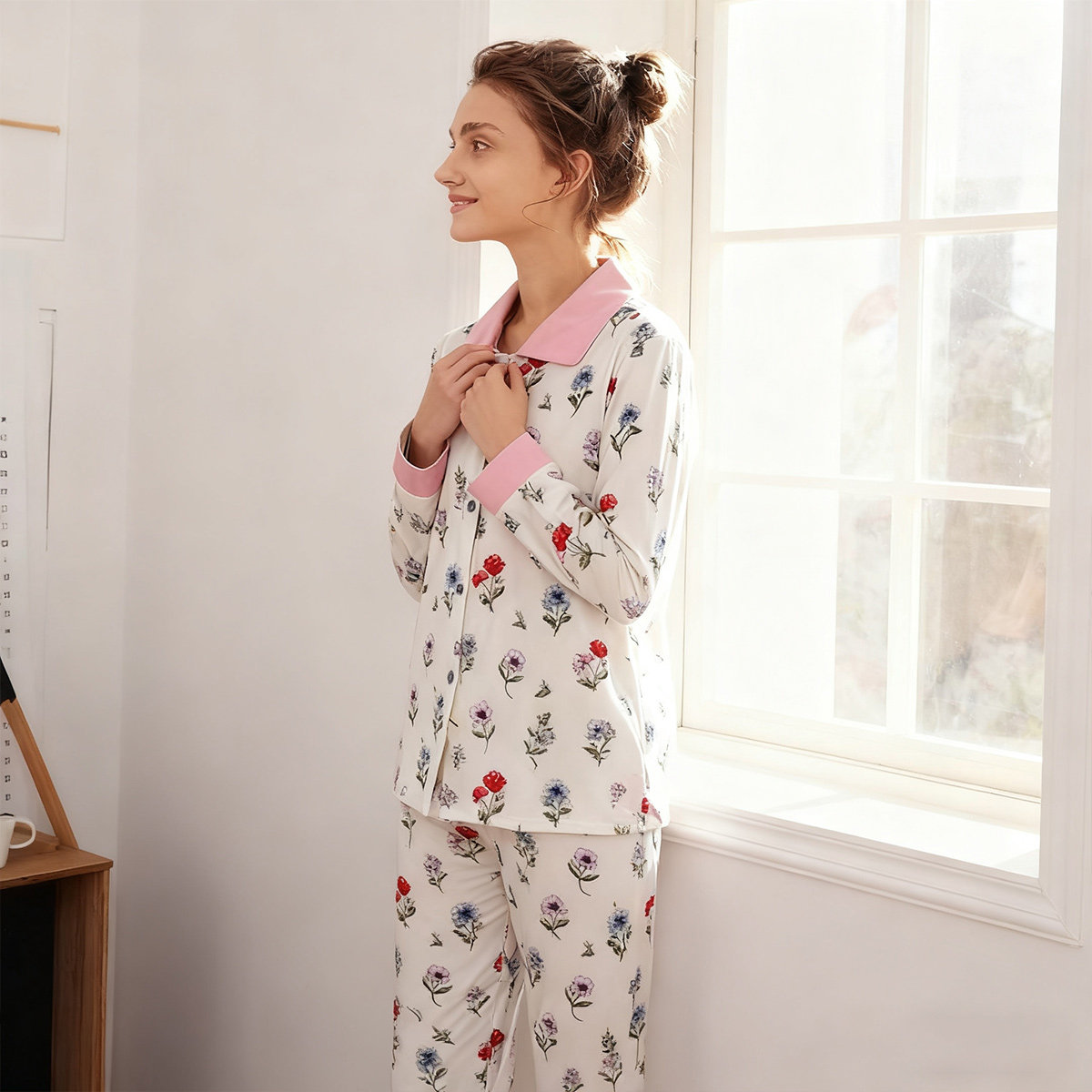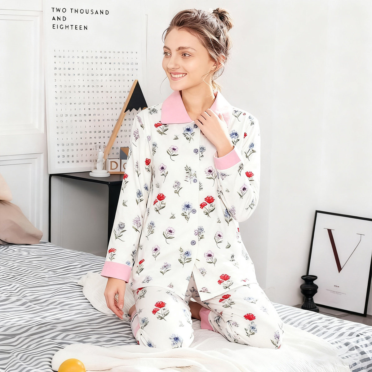 cutelife【轻羽】月子服女士长袖家居服孕妇竹棉哺乳睡衣秋冬套装