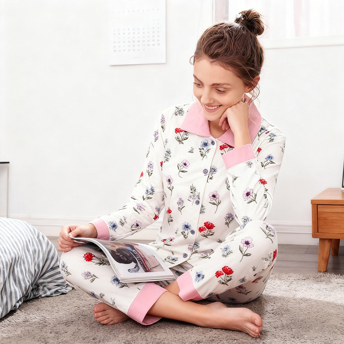 带胸垫奶香风纯棉月子服春秋季产后产妇孕妇睡衣秋冬款哺乳喂奶衣