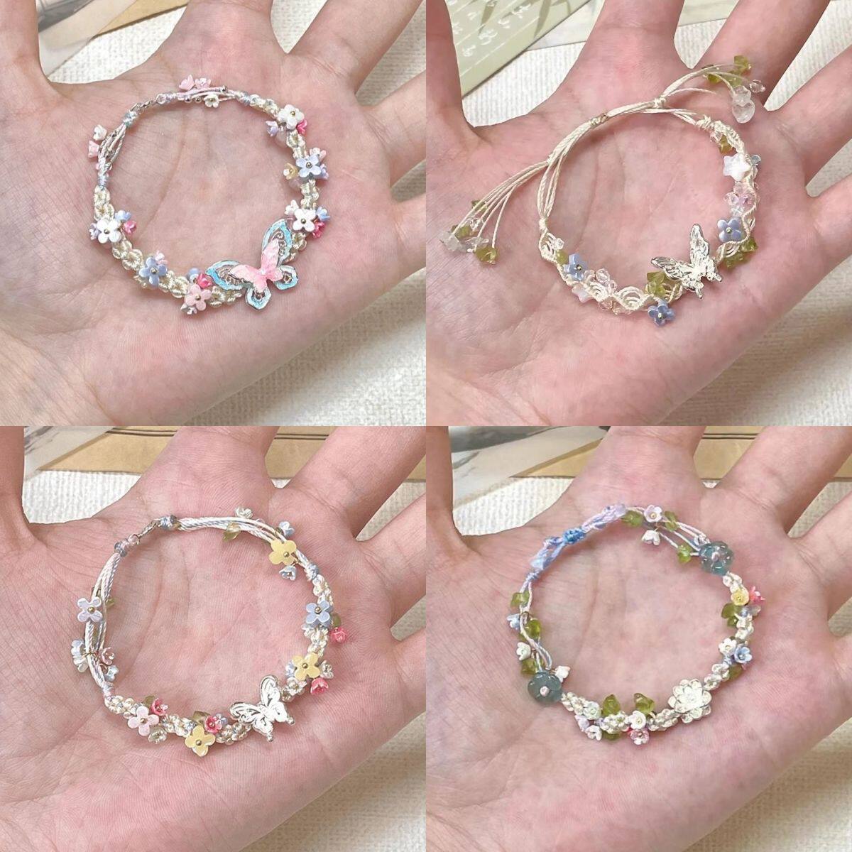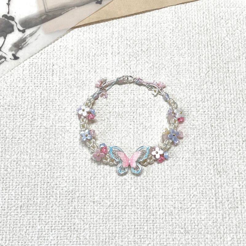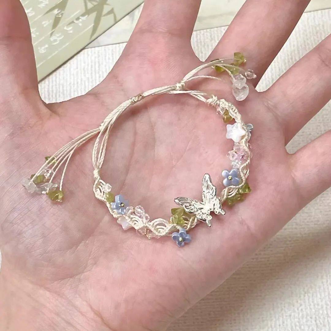 蝴蝶手绳花朵精致甜美高颜值手链2024新款夏日编织小清新手饰