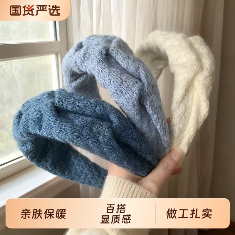 韩系克莱因蓝毛绒宽边发箍女秋冬日常外戴发捆高颅顶百搭洗脸头箍