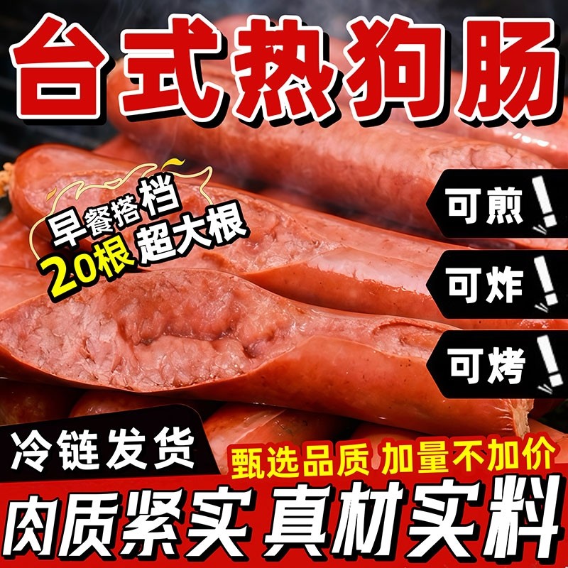 热狗烤肠台湾风味香肠纯肉火腿肠台式脆骨烧烤整箱批发手抓饼商用