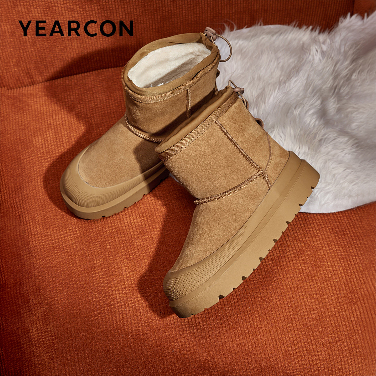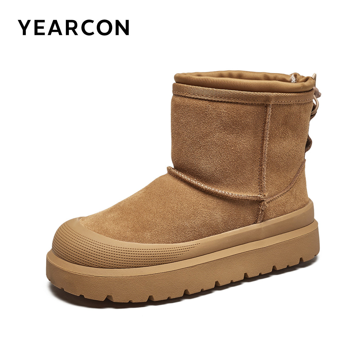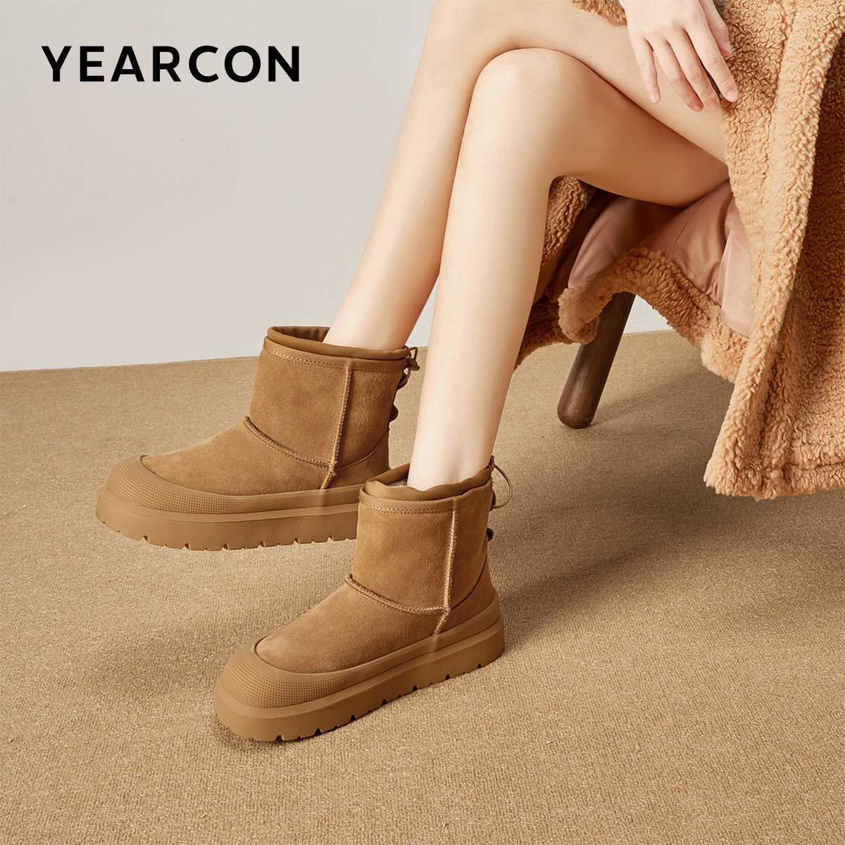 意尔康女鞋冬季加绒保暖棉鞋厚底短筒雪地靴户外休闲短靴一脚蹬