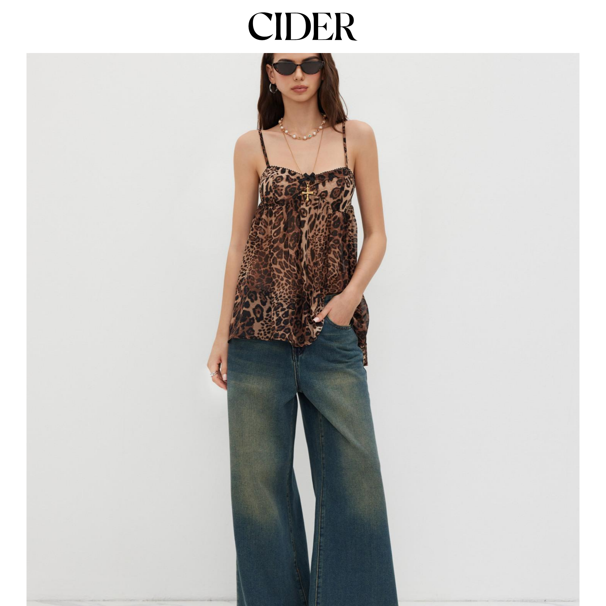 【明星同款】CIDER豹纹蝴蝶结裙雪纺性吊带连衣裙114339696