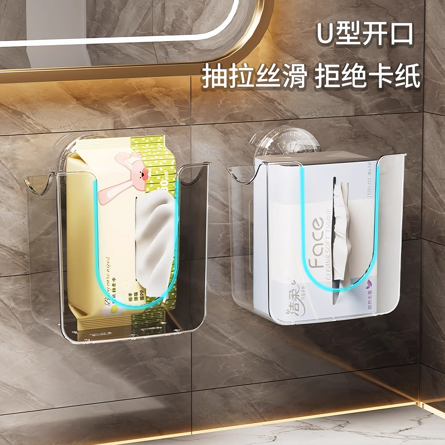 纸巾收纳盒吸盘免打孔卫生间壁挂湿纸巾盒收纳盒轻奢抽纸盒湿巾盒