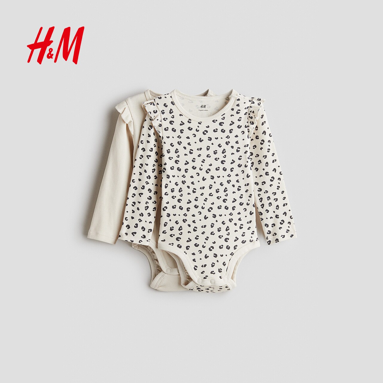 HM童装女婴连身衣2件装春季长袖休闲信封领外出哈衣1110252