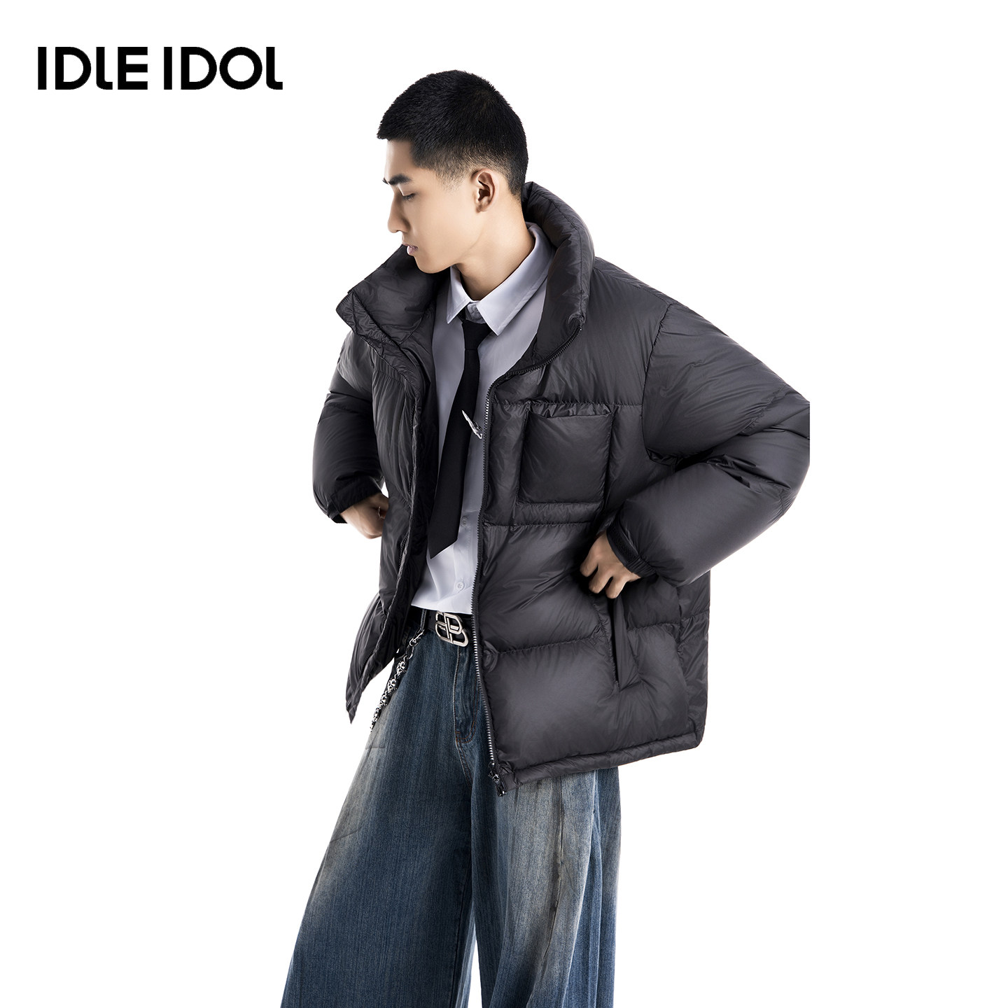 IDLE IDOL冬季立领保暖外套90%鹅绒美式宽松休闲百搭保暖羽绒服