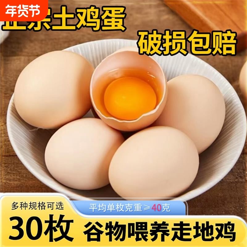 正宗土鸡蛋农家散养新鲜纯农村自养天然40枚草鸡蛋笨鸡蛋乌绿壳蛋