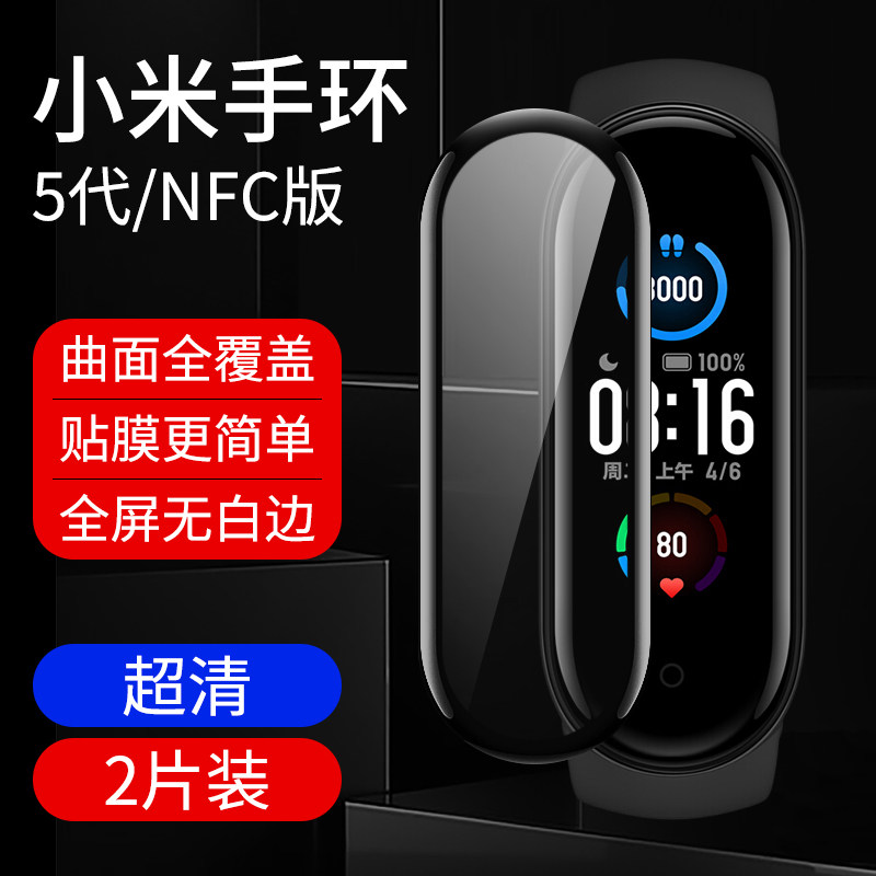适用小米手环10/9/8/7/6钢化膜6nfc版手环膜小米手环8pro贴膜4保护膜5nfc全屏覆盖全包防摔高清屏幕贴膜十代