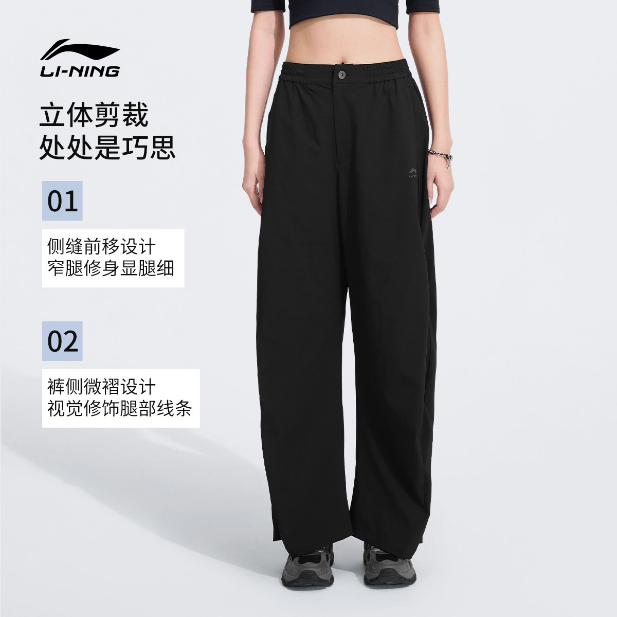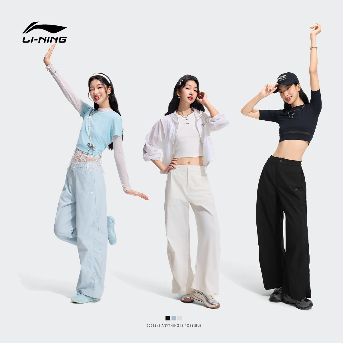 李宁奶芙裤丨阔腿裤直筒裤子女2026新款夏季薄款宽松卫裤运动长裤