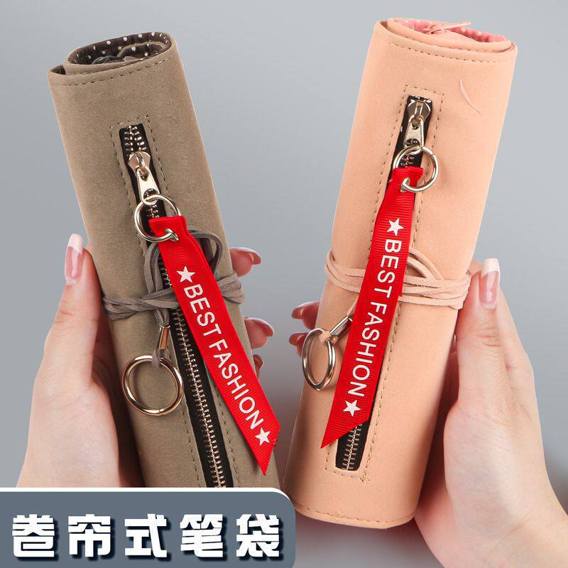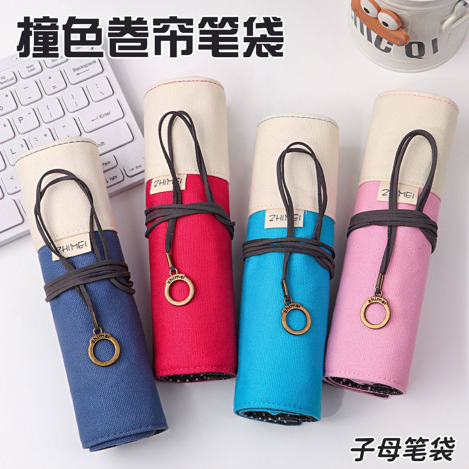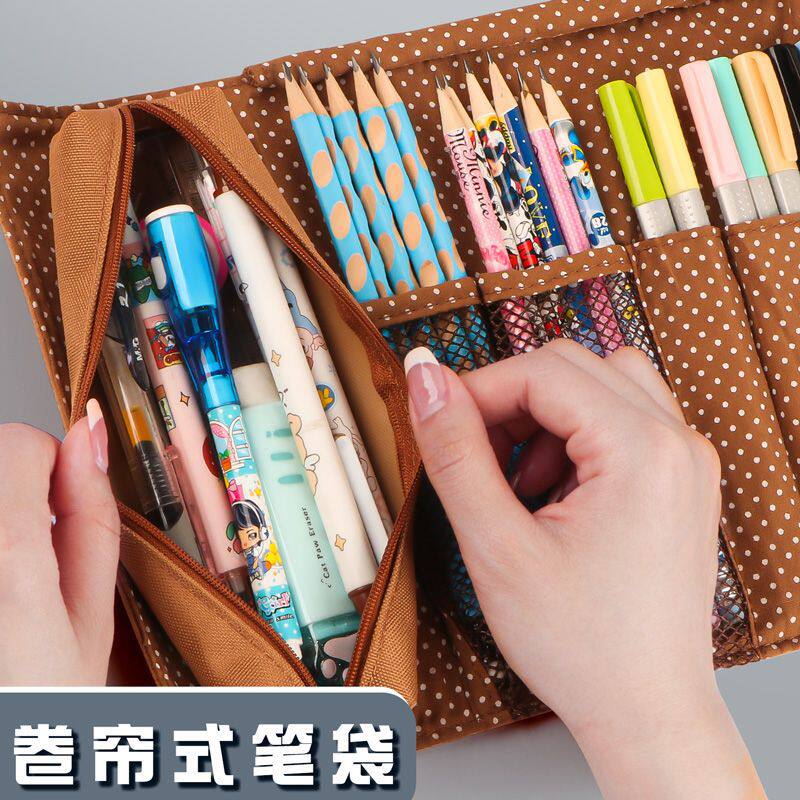 新款多功能帆布铅笔袋女生大容量文具盒铅笔盒男女孩日系ins可爱中小学生初中生高中生笔袋卷帘式卷笔袋笔帘