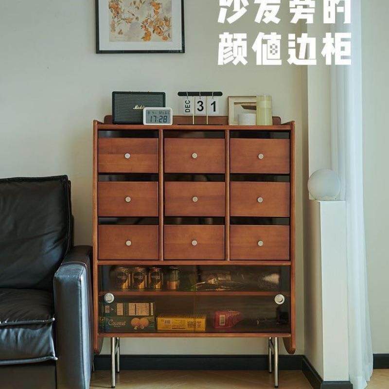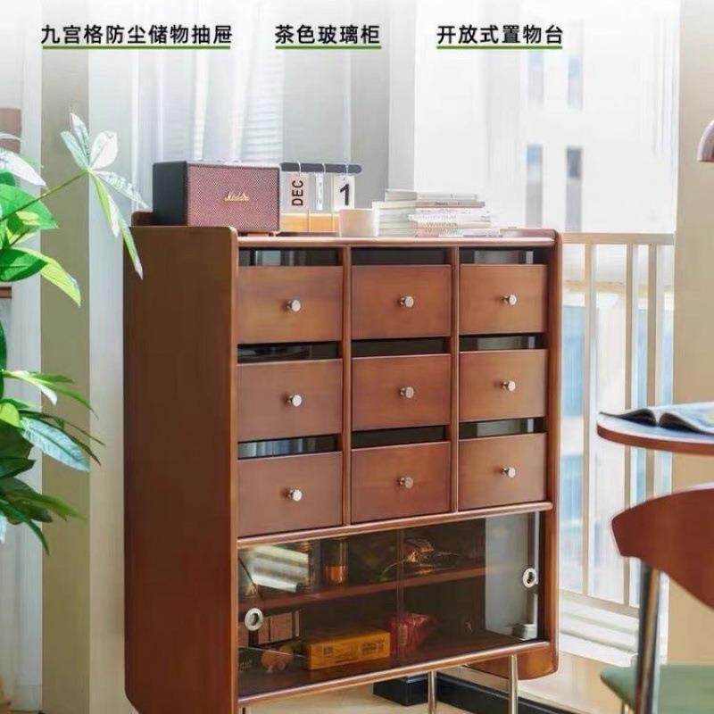 原木风实木餐边柜中古边柜一体储存柜客厅收纳柜简约现代茶水柜