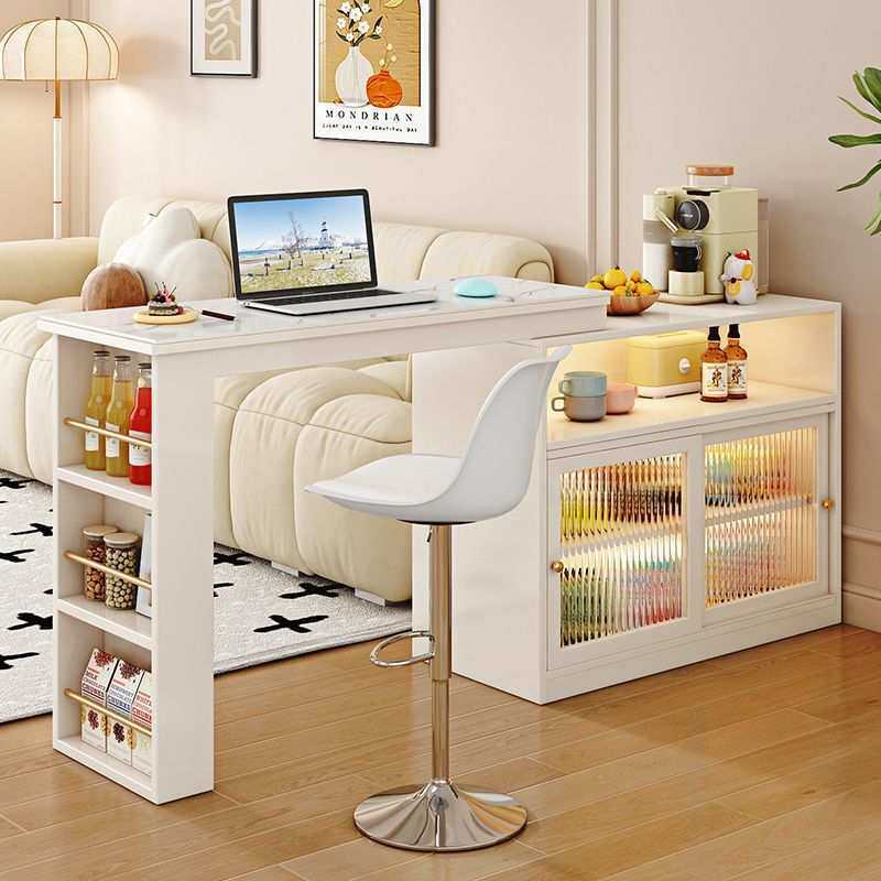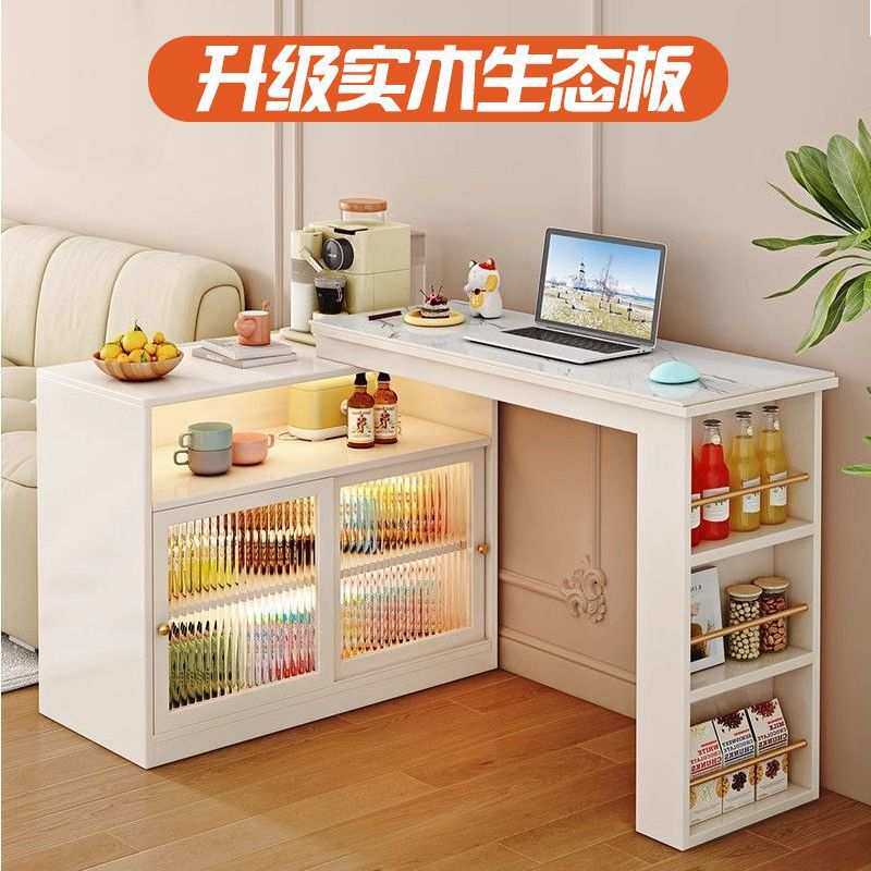 实木吧台桌子家用酒柜隔断客厅现代岩板餐边柜一体小型伸缩中岛台