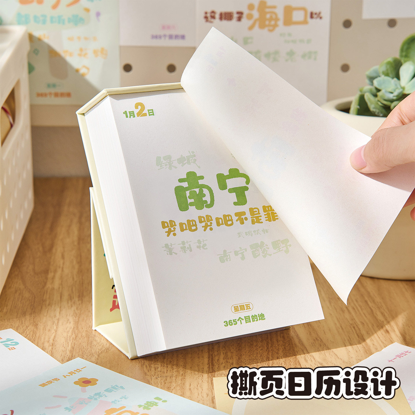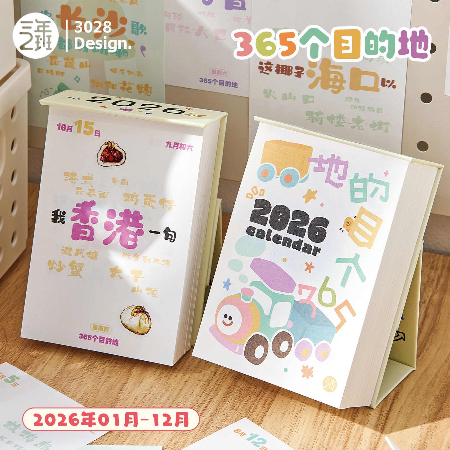 三年二班 365个目的地全年历手撕台历2026年日历新款2025年台历每日一撕桌面摆件倒计时记事本插画日历计划本