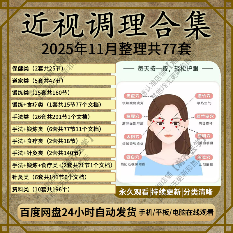 道家中医近视眼睛按摩保健恢复青少年视力调理训练手法视频课教程