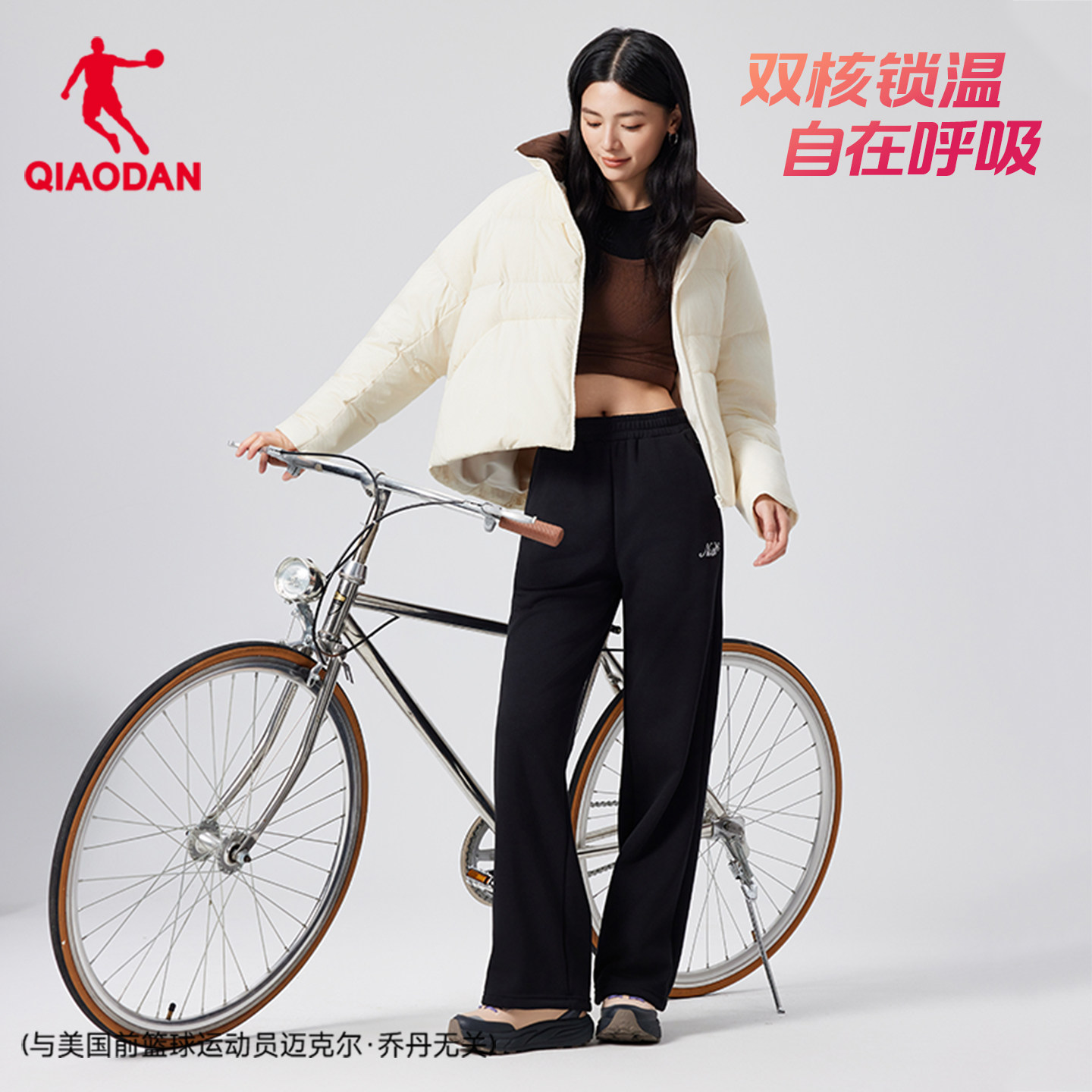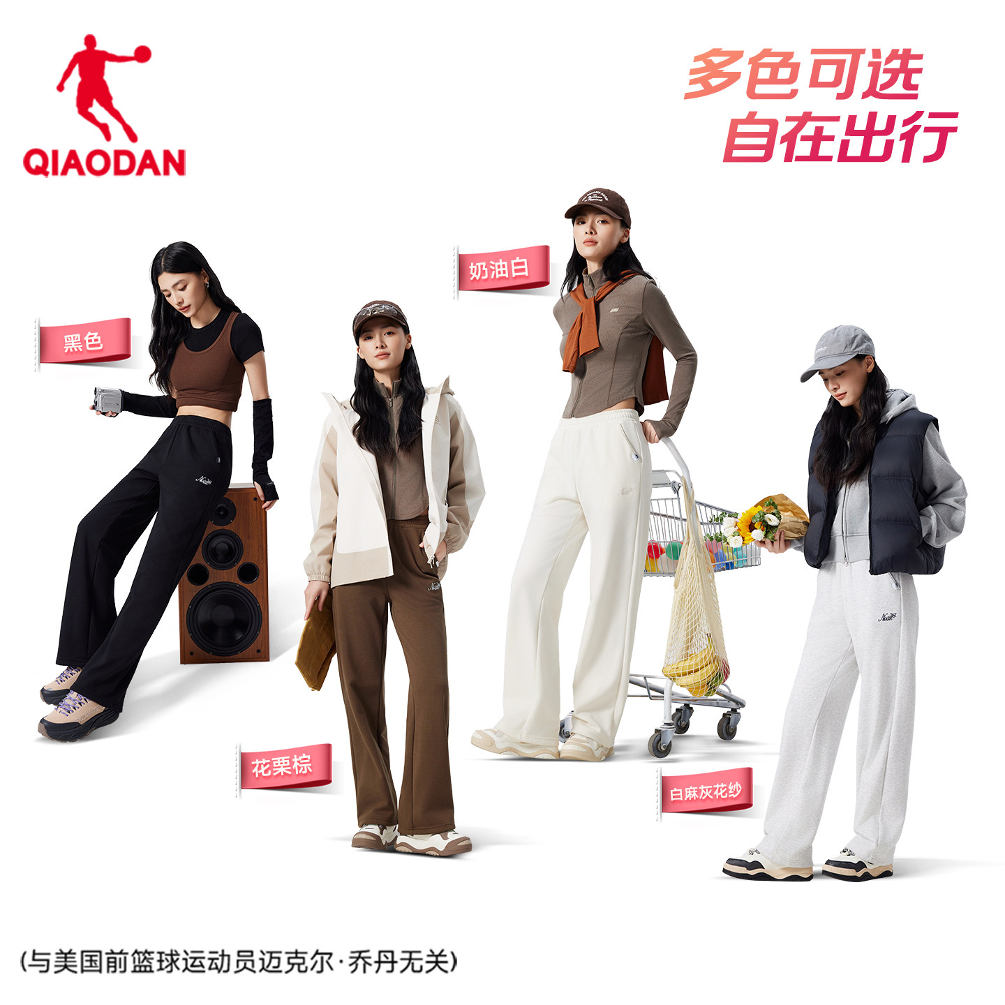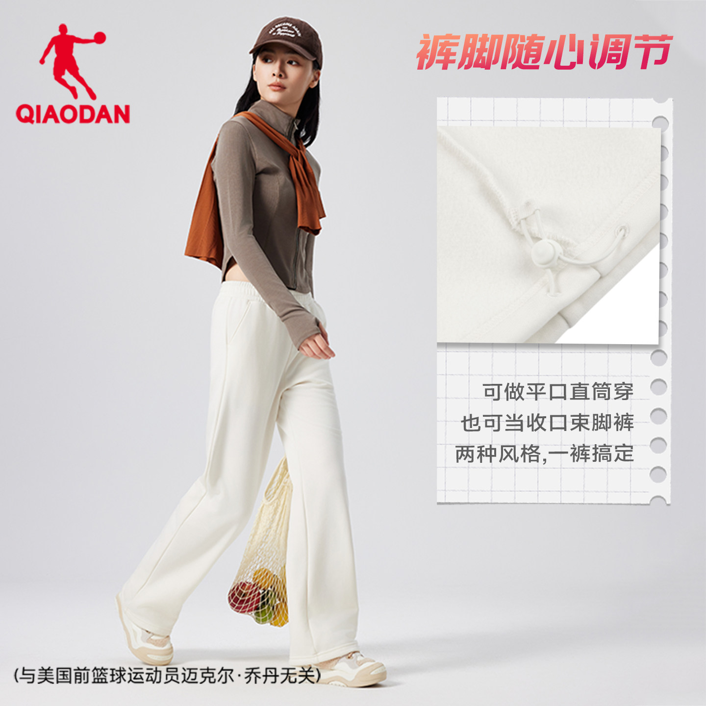 乔丹阔腿直筒加厚长裤女生休闲抽绳两穿平收口2025冬季新款保暖