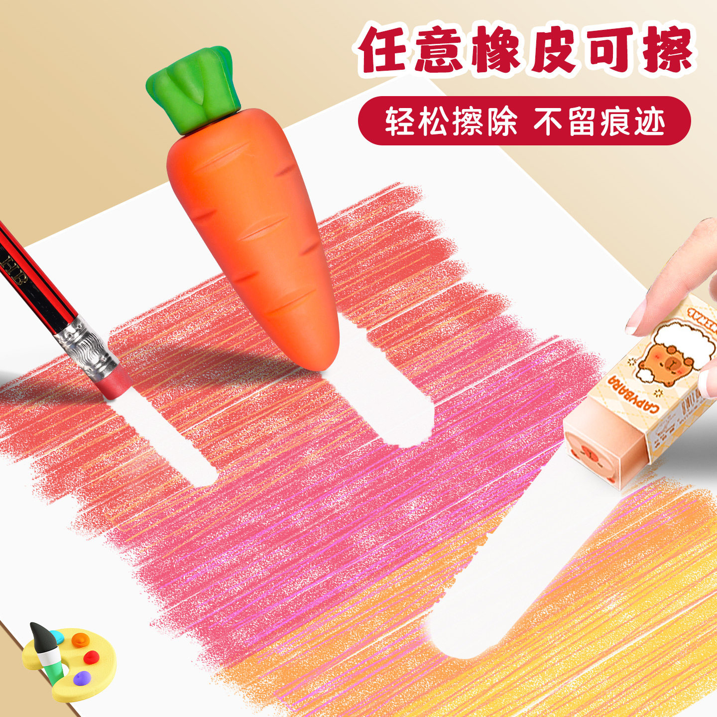 可擦彩铅笔小学生专用24色彩色铅笔一年级儿童幼儿园彩笔涂鸦画笔48色初学者绘画套装美术素描手绘填色笔12色
