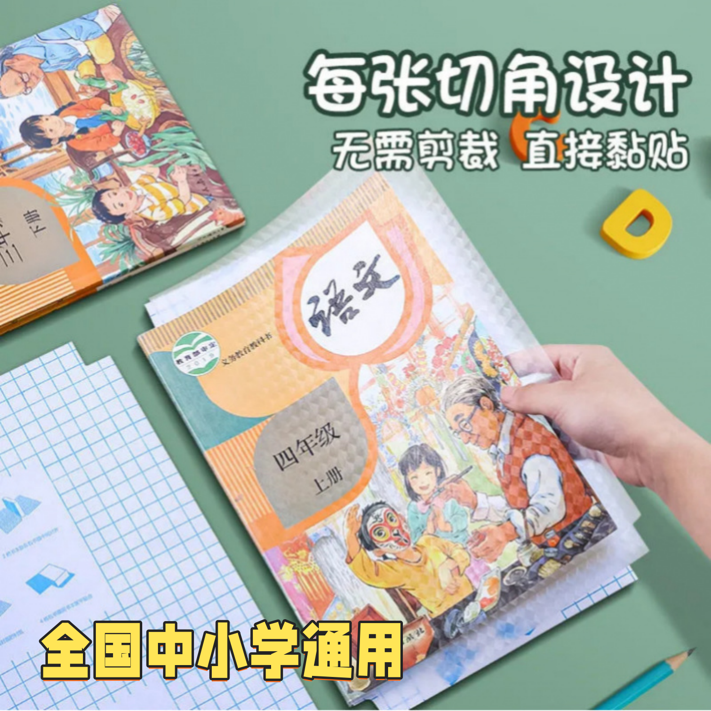 包书皮自粘透明磨砂书皮纸小学生专用一年级二三年上册中号16k课本2025新款书本封皮保护套书套书膜全套贴纸