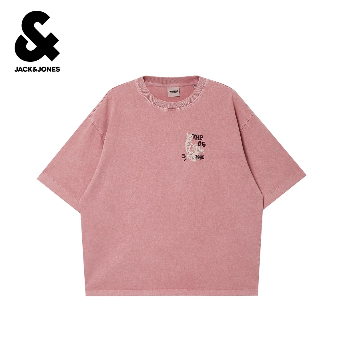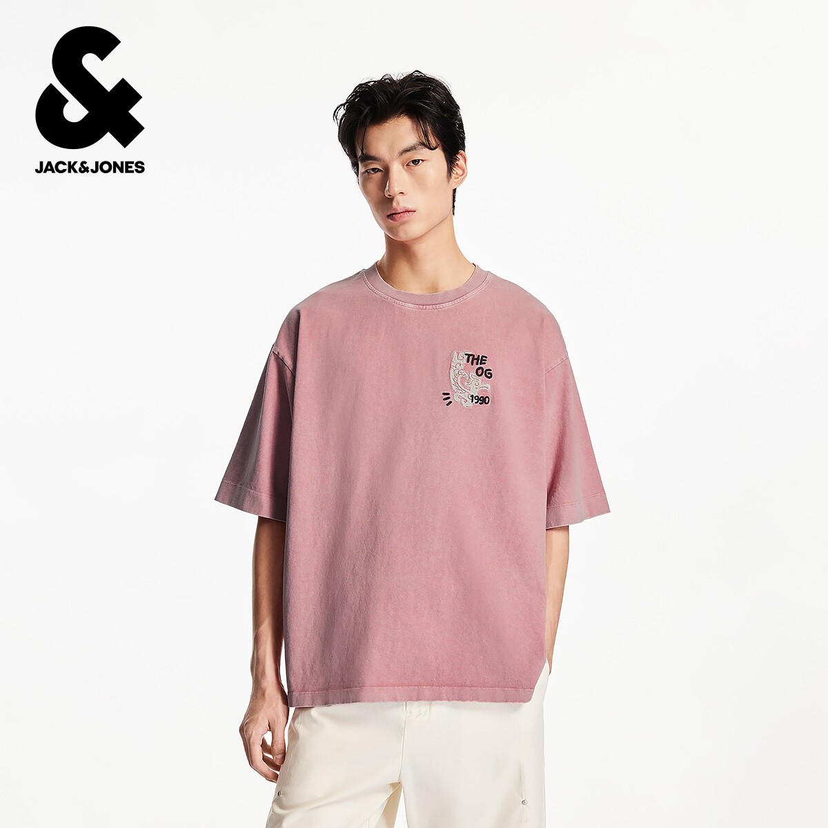 杰克琼斯男装2025年秋季新字母刺绣纯棉休闲日常宽松短袖男款T恤