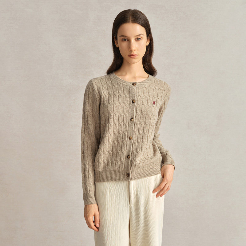 【100绵羊毛】POLOWALK针织开衫女2025秋冬绞花圆领毛衣通勤外套
