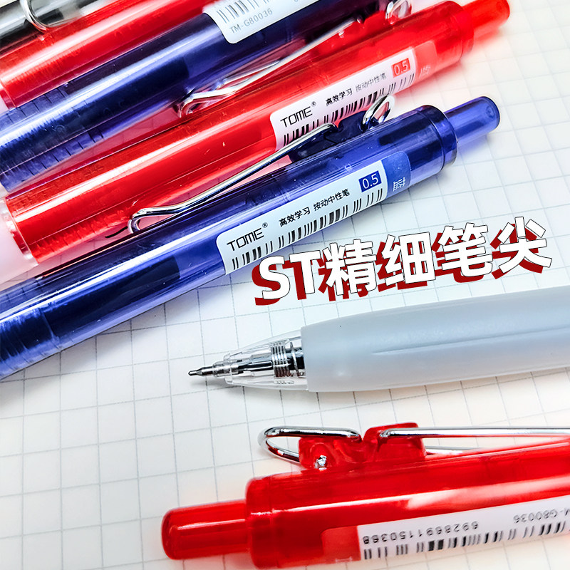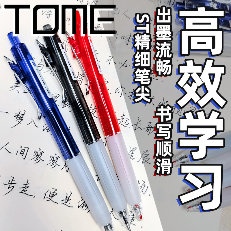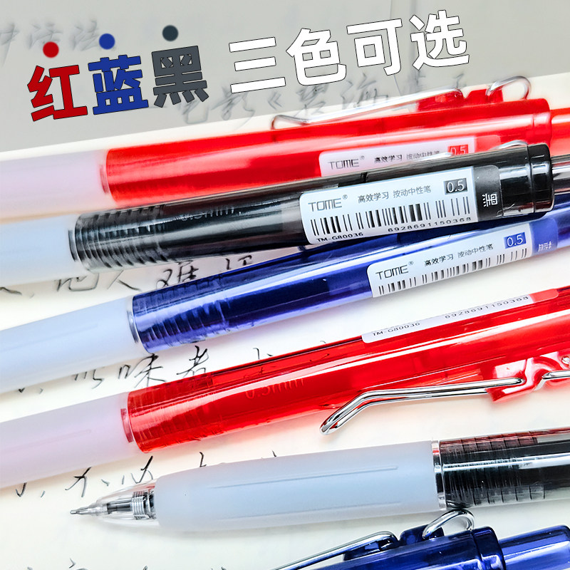 TOME图米刷题按动中性笔防水速干顺滑学生考试专用0.5黑红蓝ST尖